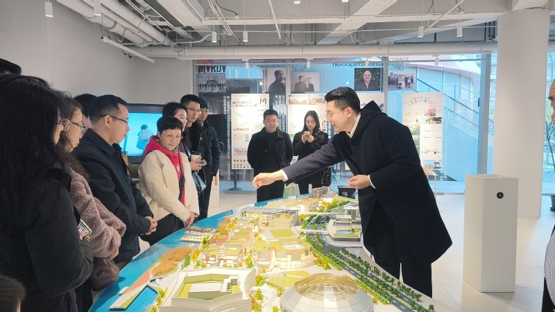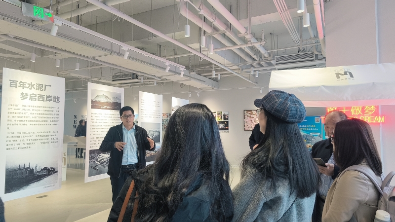 活动的第二站是GateM西岸梦中心新展厅。在西岸梦中心新展厅,徐汇区融媒体中心副主任黄文彬介绍了徐汇区把最好的滨水资源留给人民,推动徐汇滨江公共服务设施完善和产业转型升级的发展历程,以及西岸梦中心“多元业态一体化”的综合型商业布局和规划愿景。西岸集团团委书记邓鉴带领教师们参观展厅,观摩西岸沙盘模型,并为大家详细讲解了徐汇滨江从“工业锈带”蜕变成为“生活秀带”和“科创绣带”百年蜕变史。