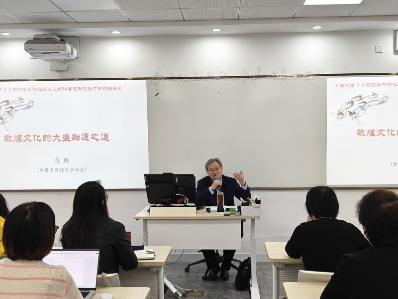 3月24日上午,校哲学研究所与welcome欢迎光临威尼斯公司共同特邀十三届全国人大代表、中国现代哲学研究会副会长、中国哲学史学会理事、兰州大学博士生导师、甘肃省敦煌哲学学会会长范鹏在学院101室为学院师生开展题为“敦煌文化的大盛融通之道”专题学术讲座。讲座由学院党委副书记杨倩主持,学院30余位师生参加。