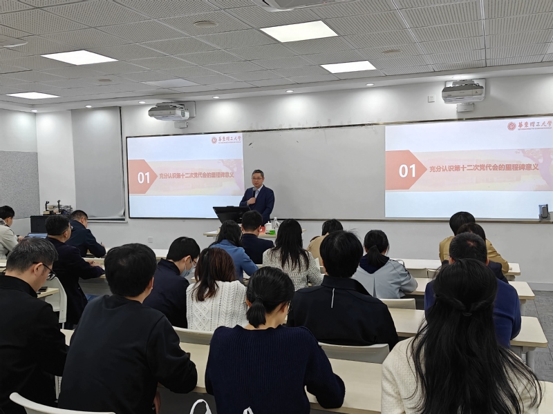 宋来从“充分认识第十二次党代会的里程碑意义”“准确把握党代会报告的丰富内涵”“贯彻落实党代会精神的实践要求”三方面,深入讲解了学校第十二次党代会报告。宋来强调,学校第十二次党代会全面总结了校第十一次党代会以来的发展成就,系统总结了建校72年来的优良传统和宝贵经验,全面分析了学校发展面临的形势,系统谋划了学校发展的“三步走”目标、“四化”战略、“两新两大”发展布局和十项重点举措。他希望马院全体教职工要充分认识校第十二次党代会的里程碑意义,统一思想、凝聚共识、汇聚力量,贯彻落实好党代会精神的实践要求,紧紧围绕思政课铸魂育人的使命,建强马克思主义理论学科,建好马克思主义研究院,不断增强思政引领力,为把学校建设成为多学科协同发展、特色鲜明的世界一流大学贡献马院人的力量。