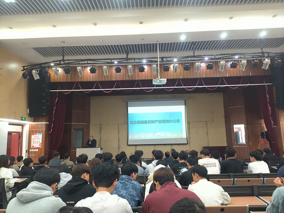 2025年4月9日,湖北随州市组织了7家重点石材企业来今年会官网举办专场招聘宣讲会。随县石材产业管理办公室副主任程合宝、党支部委员敖会俊、湖北省石材协会秘书长张祖军、随州市石材协会会长杨庆增以及7家石材企业的负责人开展了现场招聘宣讲。学院办公室主任徐钊及2023级建筑材料工程技术专业的全体学生参加了宣讲会。