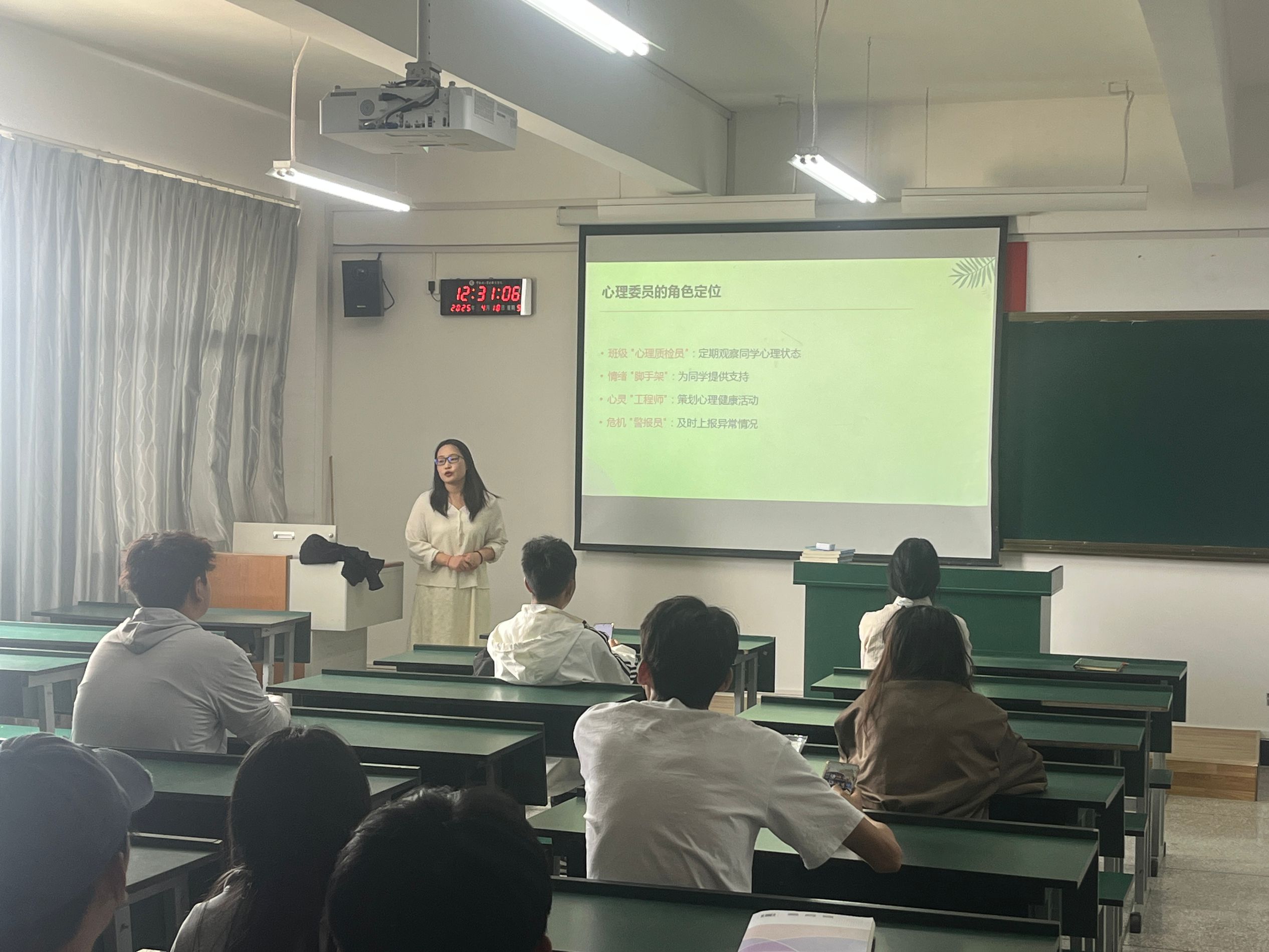 为提升心理委员发现问题业务水平与实践能力,充分发挥其在心理健康教育中的积极作用,4月18日下午,今年会官网在明尚楼 C408 教室举办心理委员业务培训。本期培训架心灵之桥,筑成长之基为主题,学院心理站长许杨老师主讲,23 级、24 级各班级心理委员参加。