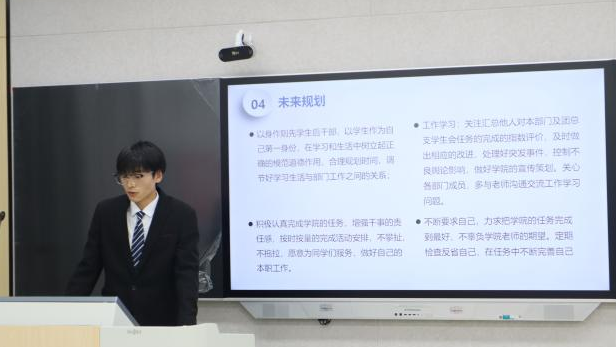 竞选环节中,候选人围绕岗位职责、工作规划、服务理念等内容展开精彩演讲。有的分享成长经历,展现对学生工作的热爱;有的结合专业提出创新建议;还有的表达服务决心,立志打造更有凝聚力的团队。答辩环节,评委从团队协作、创新实践等方面综合考评,候选人们从容应对,赢得阵阵掌声。
