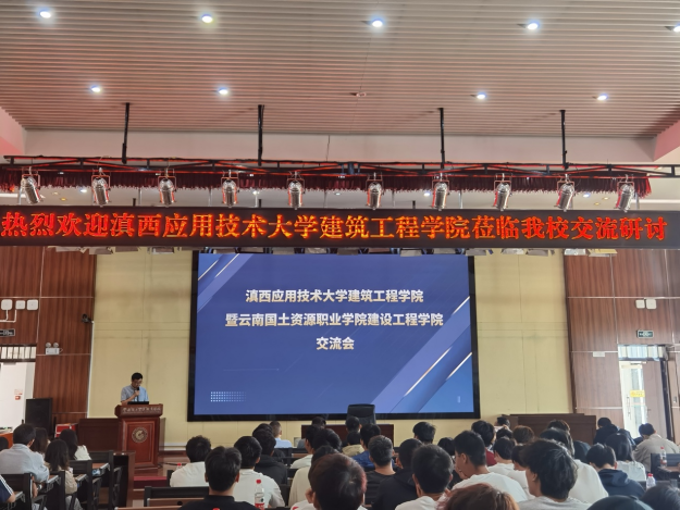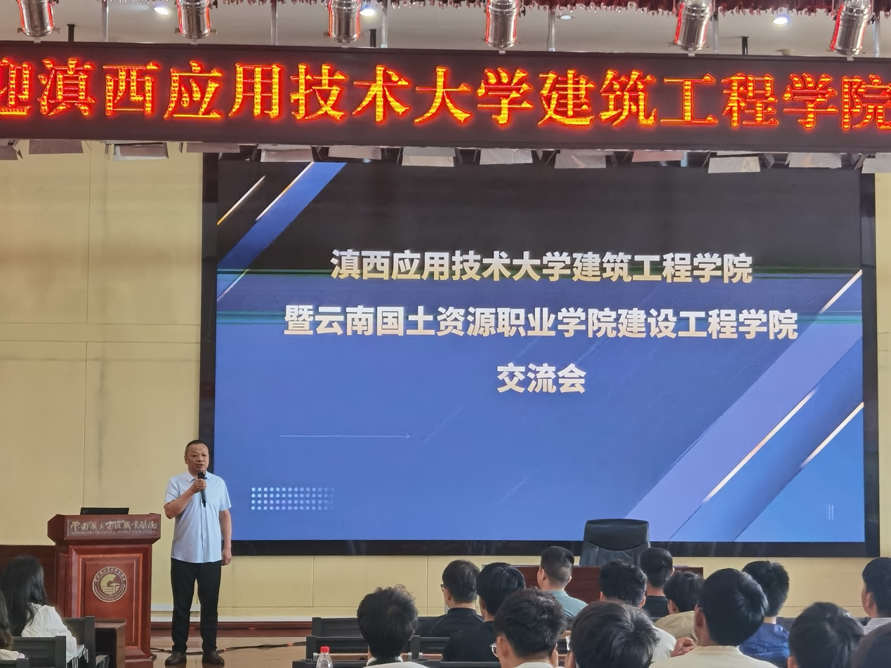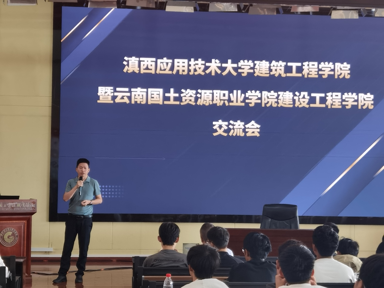 交流活动在学校宝鼎讲堂举行,由赵岩枫副院长主持。他代表学院致辞,对滇西应用科技大学师生的到来表示热烈欢迎。随后,彭明兴院长与滇西应用技术大学今年会官网邱成江院长分别发言,对各自学院的专业设置、学生规模、发展情况等做介绍,并强调了校际交流对人才培养的重要性,表达了深化合作、共促发展的愿景。昆明品茗科技有限公司总经理张泉分享了智慧工地建设思考,并深入探讨了行业人才需求的最新演变趋势,并就如何相应调整人才培养的策略与实践,为两校的人才培养工作提供了思路借鉴。