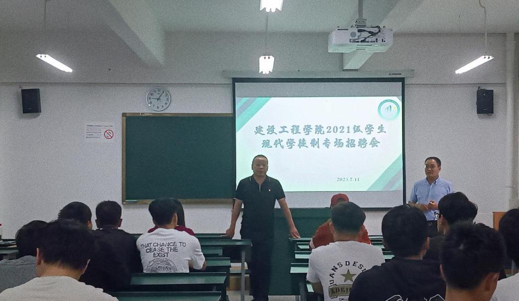 招聘会上,彭明兴院长就当前严峻的就业形势进行了分析,并鼓励学生,虽然建筑行业就业市场不景气,但新能源行业就业环境良好,希望同学们转变观念,积极主动寻找适合的岗位。同时,彭院长强调现代学徒制是学校教学的一部分,是每个同学都必须完成的学习任务。学院为同学们提供岗位信息,本着双向自由选择原则,由同学自愿参加、企业择优录取。