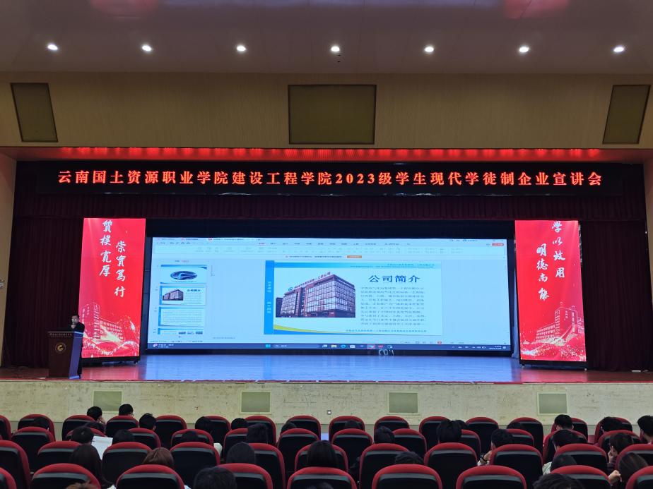 2025年3月28日下午,云南千岩质量检测有限公司与中铁电气化局集团第一工程有限公司在今年会官网举办现代学徒制专题宣讲会。学院党委书记李洪香、专业教师杨建桥及2023级全体辅导员和学生在明礼堂参加活动。