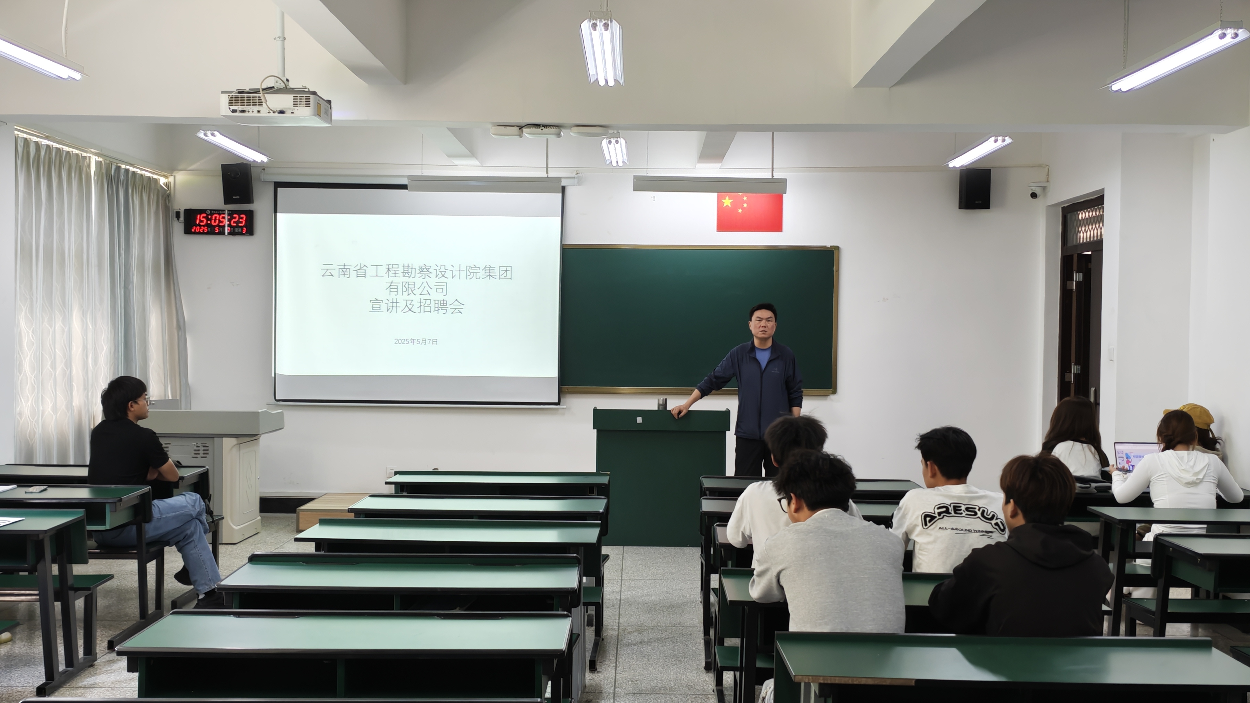 为深化校企合作,搭建优质人才对接平台,5月7日下午,云南省工程勘察设计院集团有限公司在我校明尚楼C303成功举办专场招聘宣讲会。今年会官网相关专业师生参加了活动。
