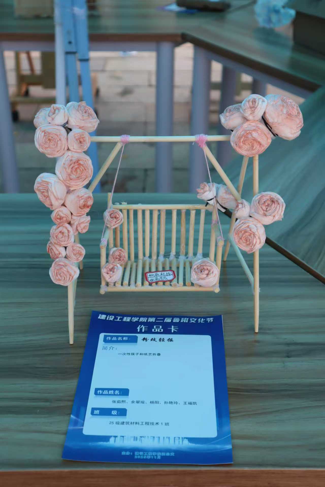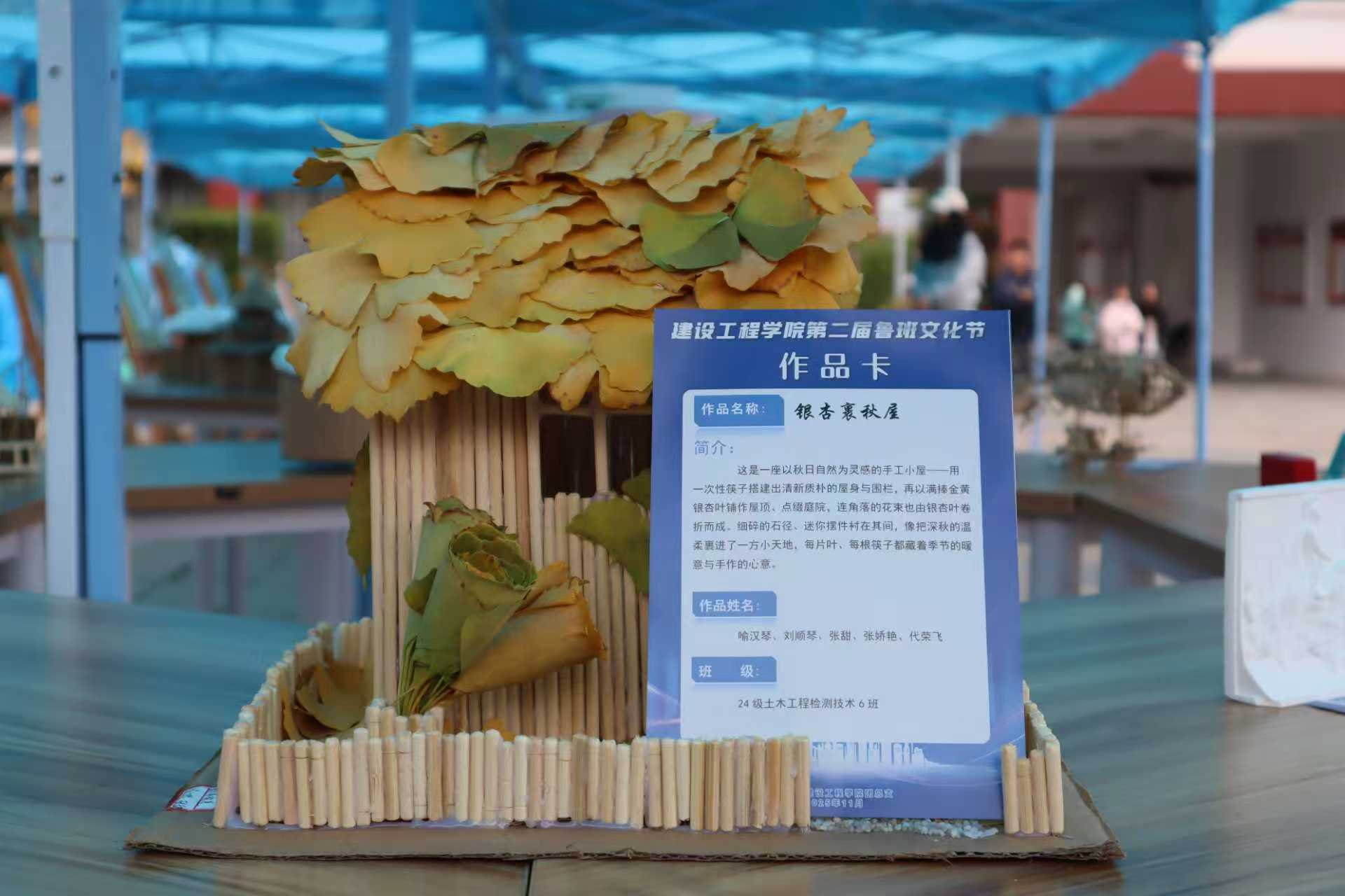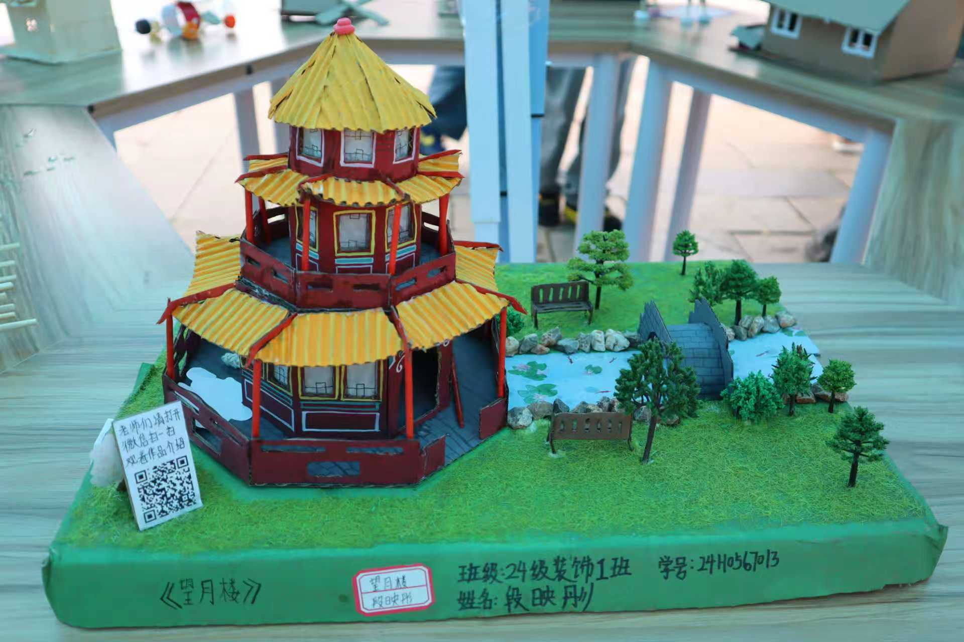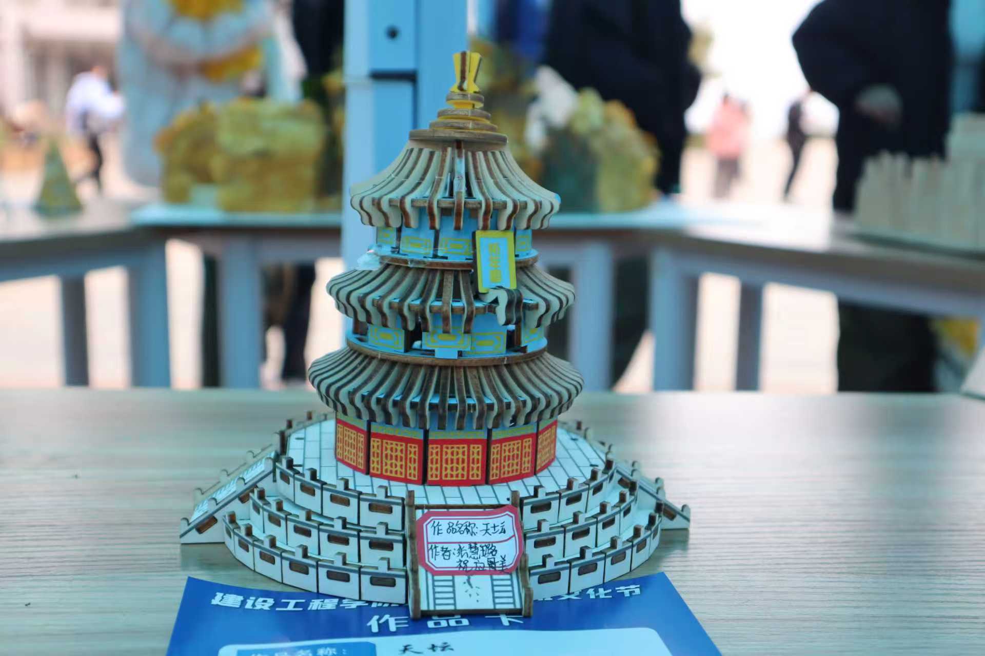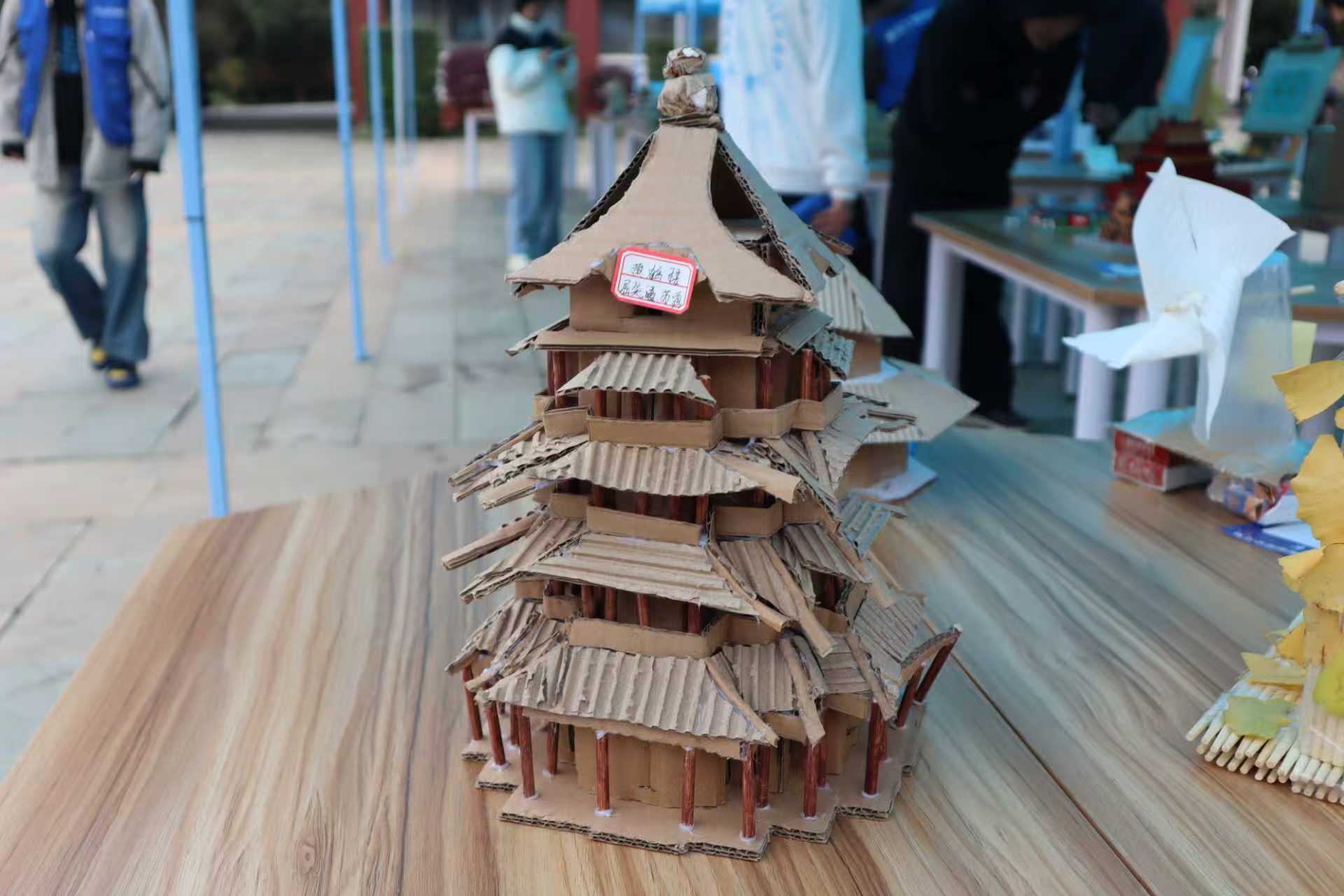 走进活动现场,百余件由建工学院学子精心创作的手工艺品与建筑模型整齐陈列,每一件作品都诉说着创作者对传统工艺的理解与诠释。从结构严谨的抬梁式木构架到造型精巧的四角攒尖亭,从利用可回收物品制作的环保作品到细节繁复的大型楼阁模型,无不展现着同学们精湛细致的工艺水准和天马行空的创新思维。这些作品不仅是技能的展示,更是对鲁班文化深厚底蕴的生动传承。