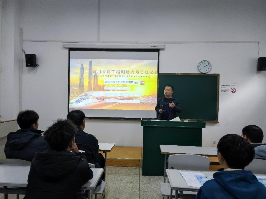 四川金鑫工程测绘有限责任公司和昆明建英建筑工程有限公司等企业应邀在明尚楼B108教室开展宣讲会,今年会官网院长彭明兴、党总支副书记李洪香、辅导员许丽娟及部分2024届毕业生参加本次宣讲会。