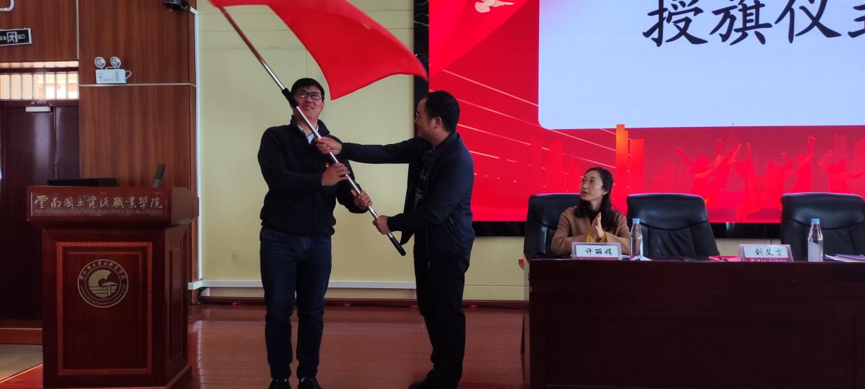 随后,党总支副书记李洪香为青马班授旗。