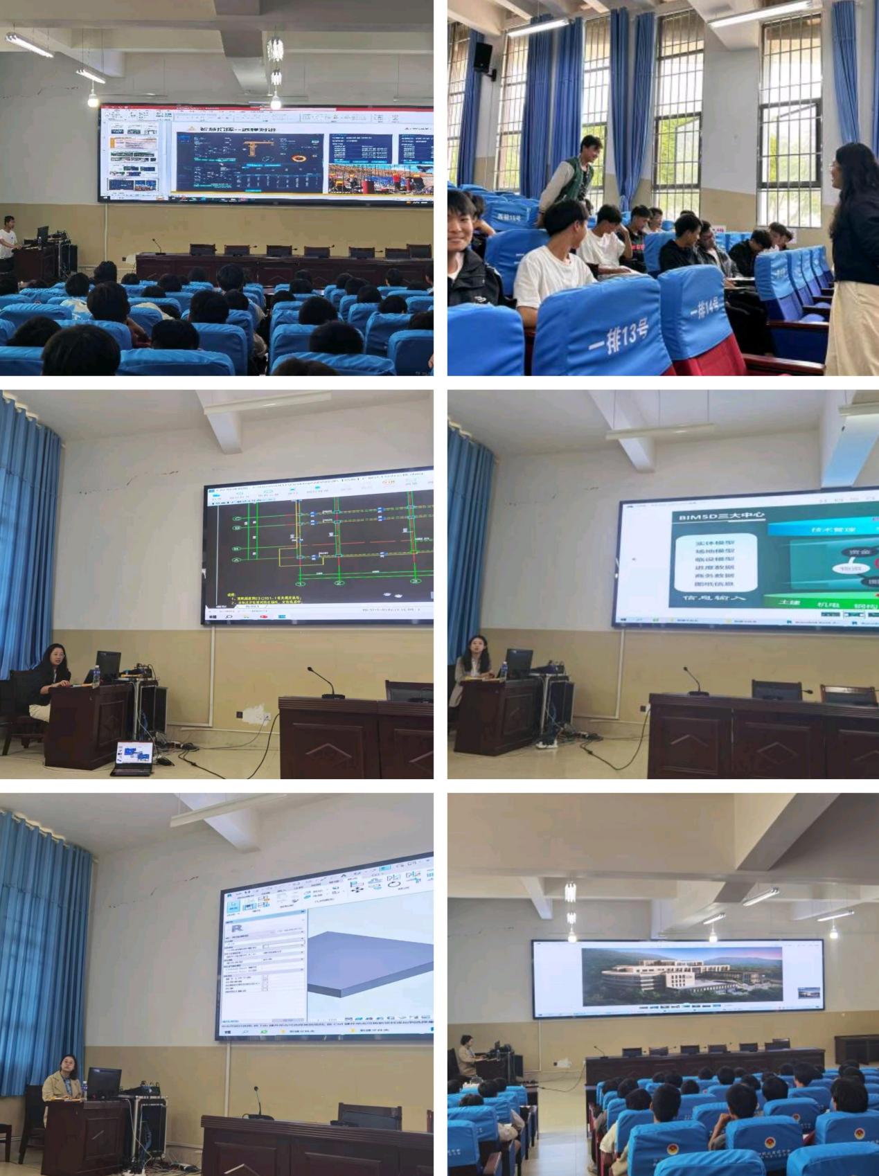 张凤婷老师讲解了BIM技术在建筑行业的应用,以今年会jinnianhuicom的教学楼和图书馆建筑为例,给学生演示了BIM模型。左婷老师介绍了施工现场数字化施工的应用前沿,并给学生展示了今年今年会官网学生参加第五届全国高校智能建造创新应用大赛总决赛数字化施工方案设计荣获一等奖的学生作品。王绮滢老师还原了生动的课堂,带给学生钢筋平法专业基础知识,并应用钢筋平法识图教学软件将学生难以理解的结构施工图以直观、立体的钢筋信息模型展现出来,并以在校学生做的建筑信息模型为例,展示了建筑信息技术在工程计量计价中的应用。另外,品茗科技股份有限公司工作人员给学生介绍了智慧工地、绿色工地。