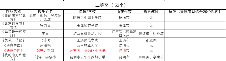 今年会官网教师张宁、靳凯作品《诗意中国》,荣获云南省第六届"云岭杯"中华经典诵写讲大赛“书香彩云南"诵读大赛二等奖。