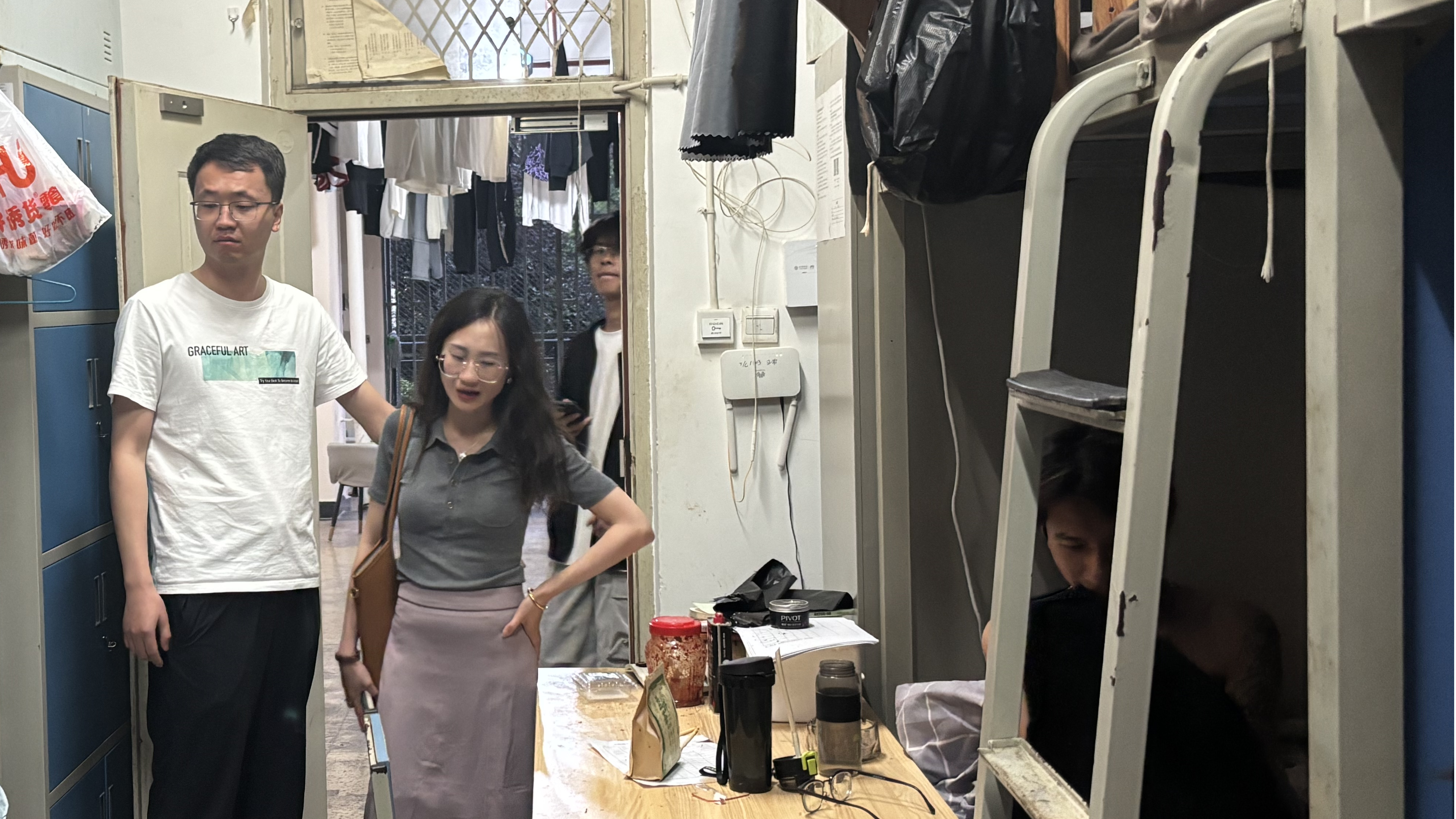 检查过程中,老师们重点查看了宿舍卫生、物品摆放、安全用电及文化氛围营造等方面,并与同学们亲切交流,了解他们的生活学习情况。张宁老师强调,良好的宿舍环境是学生健康成长的重要保障,各班级要严格落实宿舍管理制度,引导学生养成良好生活习惯。