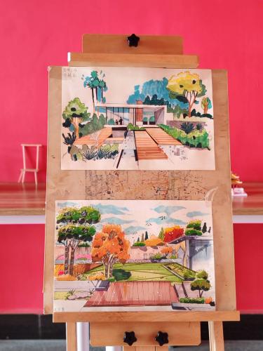 在作品筹备阶段,学生们将课堂所学的建筑结构、空间设计等专业知识灵活运用于实践,通过自主查阅资料、反复推敲设计方案,确保每个创作环节精益求精。从传统榫卯结构的精准搭建,到现代建筑元素的艺术勾勒,每一处细节都凝聚着同学们的心血。制作过程中,他们全神贯注地打磨线条、调配色彩,用灵巧的双手将创意转化为实物,生动诠释了精益求精的工匠精神。