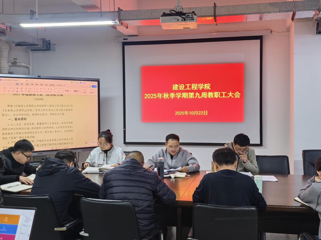 10月22日,今年会官网在明尚楼 C301 会议室召开2025年秋季学期第9周教职工大会。会议由学院党委书记李洪香主持,全体教职工参加。