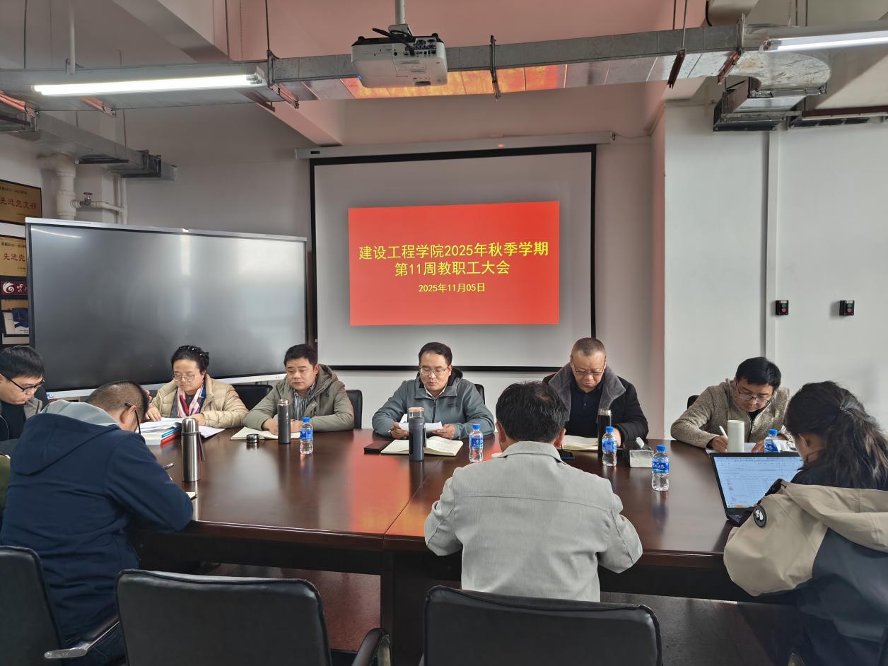 2025年11月5日,学院在明尚楼 C301 会议室召开2025年秋季学期第11周教职工大会。会议由学院党委书记李洪香主持,全体教职工参加。