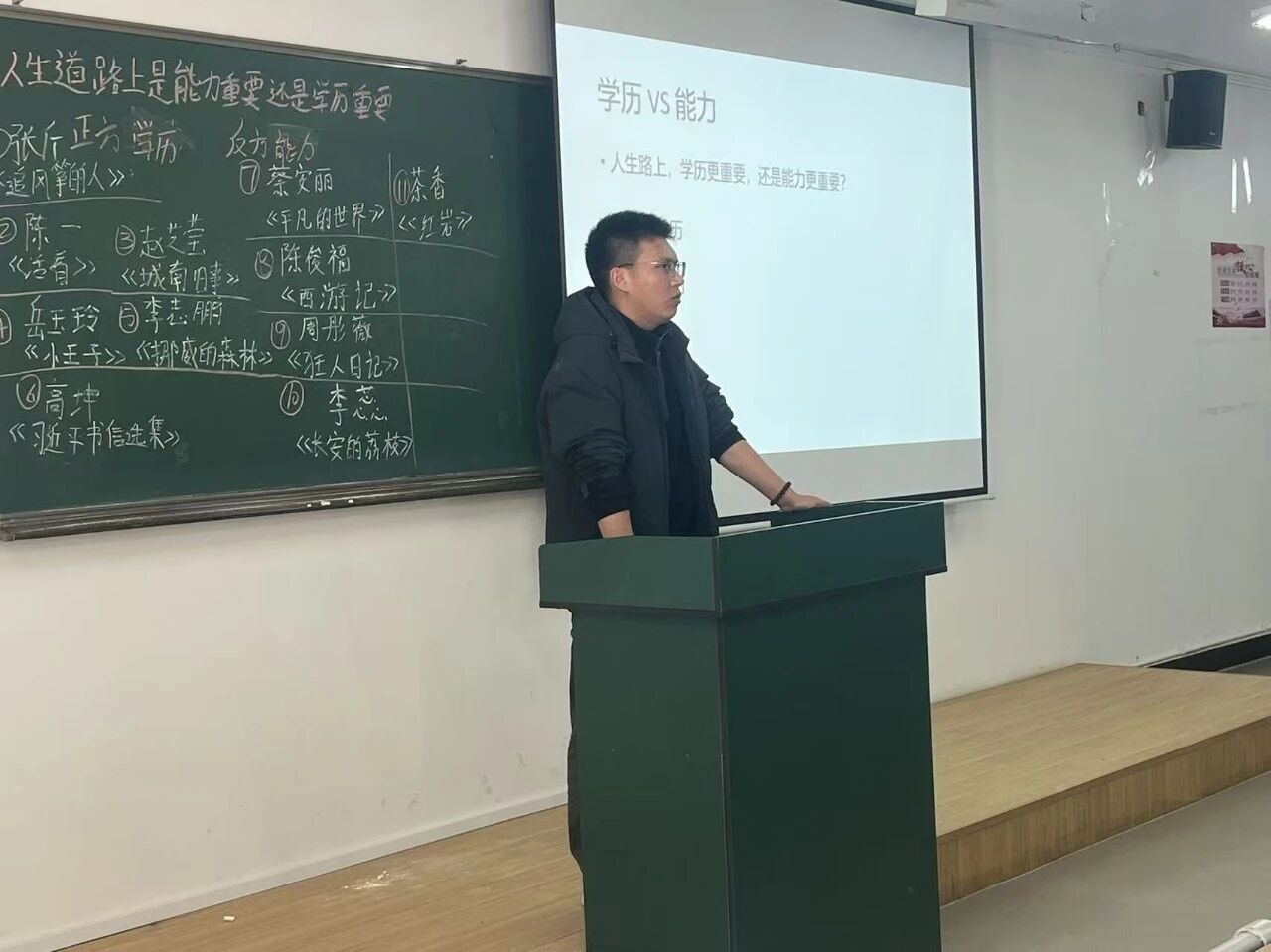 学生自主分享环节为活动核心亮点。同学们结合制作的PPT,有人分享《活着》一书,动容讲述福贵苦难中坚守生命的故事,传递“活着即力量”的感悟,让听众领会直面挫折的真谛;有人解读《习近平书信选集》,重点解读节选中习近平总书记对青年的寄语,结合“珍惜韶华、奋发有为”嘱托,融入思政教育,阐明青年责任担当;有人谈及《平凡的世界》,阐释平凡人在时代中坚守初心、拼搏的价值,让学子明白奋斗是青春的底色。同时现场还设置了互动交流环节,同学们踊跃提问、各抒己见,思想的火花在热烈探讨中激烈碰撞。
