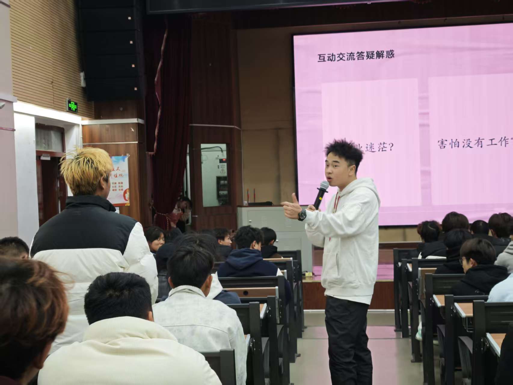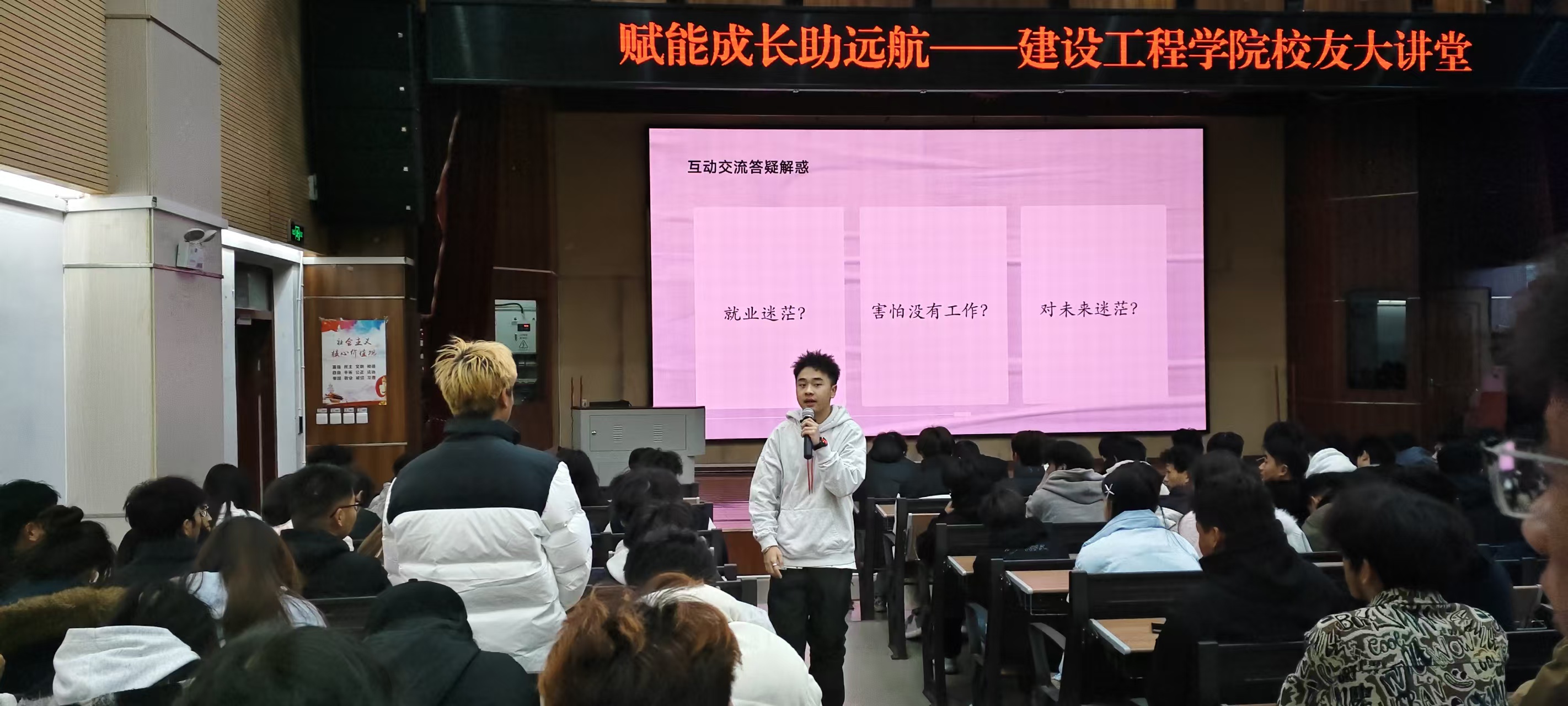 整场分享会氛围热烈,余昊隆同学的成长经历鲜活生动,奋斗故事真挚感人。互动环节中,学子们围绕专业学习重点、跨界职业选择、创业风险规避等问题踊跃提问,他结合自身经历逐一细致解答,现场掌声与掌声此起彼伏。不少同学表示,校友的分享让自己对“成长”与“奋斗”有了更深刻的理解,也为未来的学业规划与职业发展指明了方向。