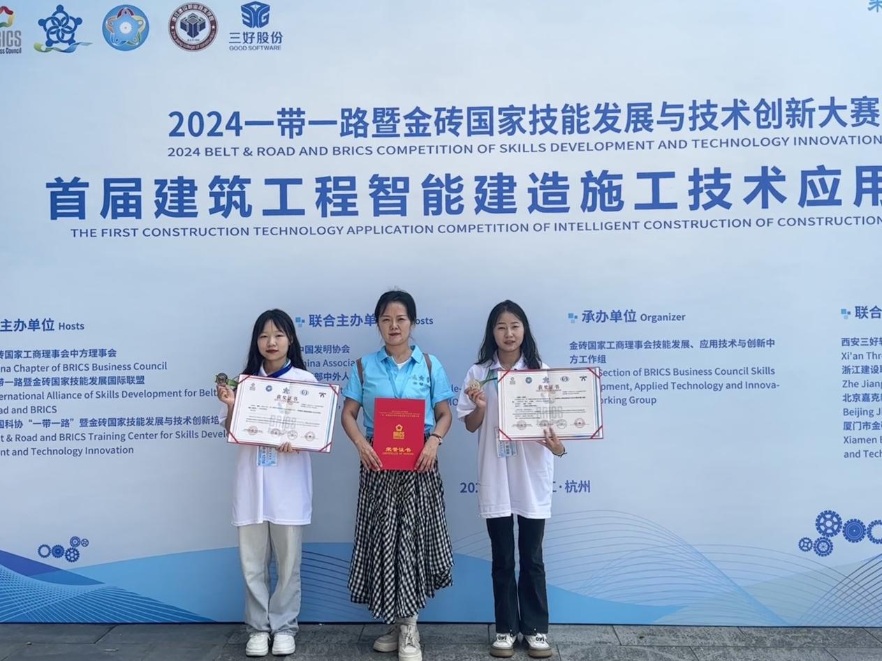 2024一带一路暨金砖国家技能发展与技术创新大赛首届建筑工程智能建造施工技术应用赛项全国总决赛于2024年9月27日至28日在浙江杭州举行。由我校今年会官网老师崔译丹带队,2022级学生冷雨桐、王雄彦组成的参赛队伍参加了比赛,经过激烈角逐,我校学生荣获二等奖。据悉,本赛项为建筑施工领域在金砖大赛平台举办的首届赛事,共有来自全国高职院校的282支队伍参赛,是同类大赛中属覆盖区域最广、参赛规模最大、参与人数最多的赛项之一。