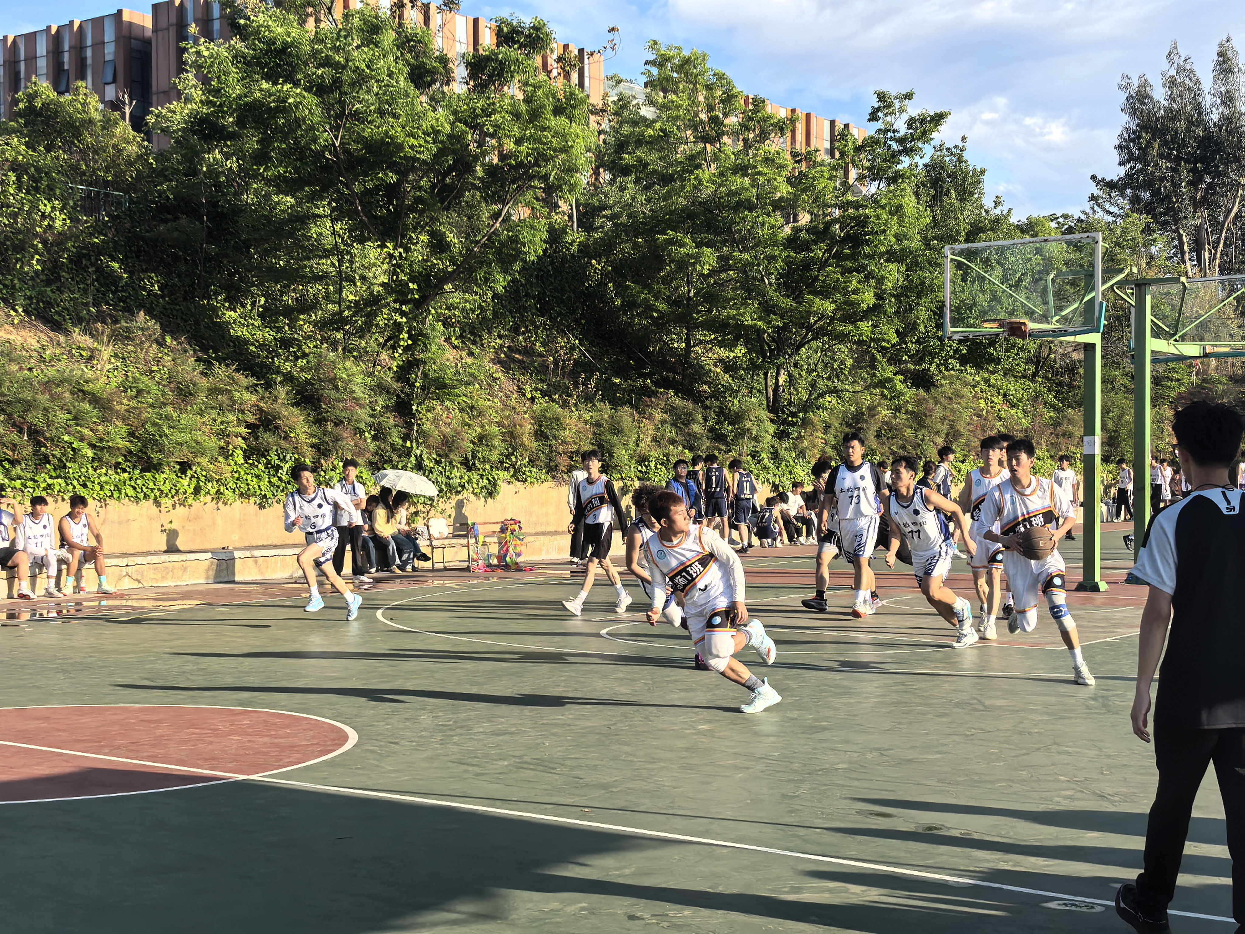 本次赛事采用循环淘汰制,32支参赛队伍通过抽签确定对阵。赛场上,球员们配合默契、攻防有序,展现了建工学子顽强拼搏的体育精神。