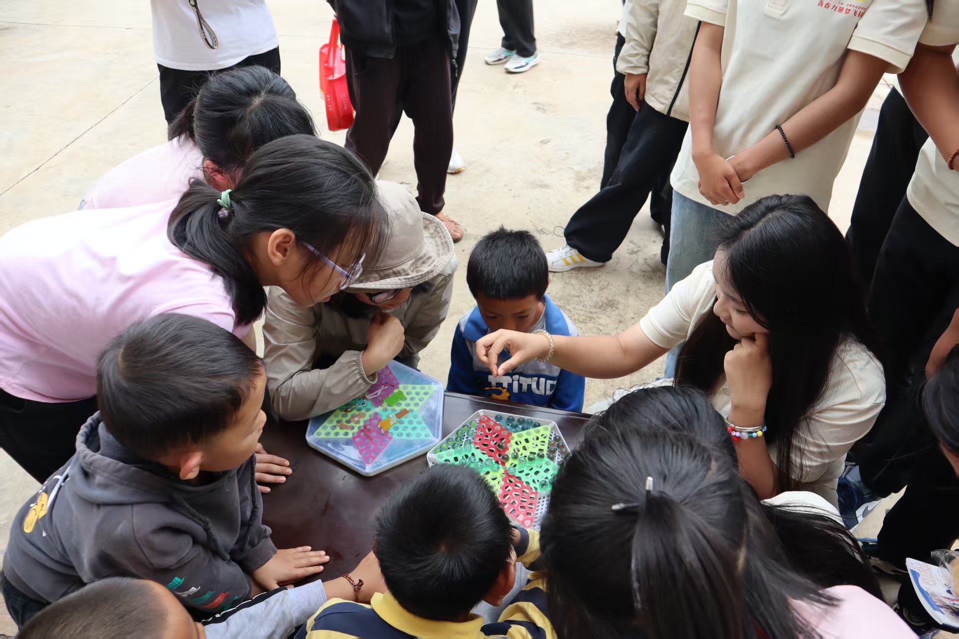 7月11日下午,老滔村党群服务中心传来阵阵欢笑。实践团为12名不同年龄段的孩子打造“安全嘉年华”:地震避险情景演示,让安全知识“看得见”;跳棋闯关游戏,把交通、消防常识融进童趣;集体生日会,小寿星吹蜡烛、收礼物,在温暖中学会自护。孩子们带着笑容把平安习惯带回家。