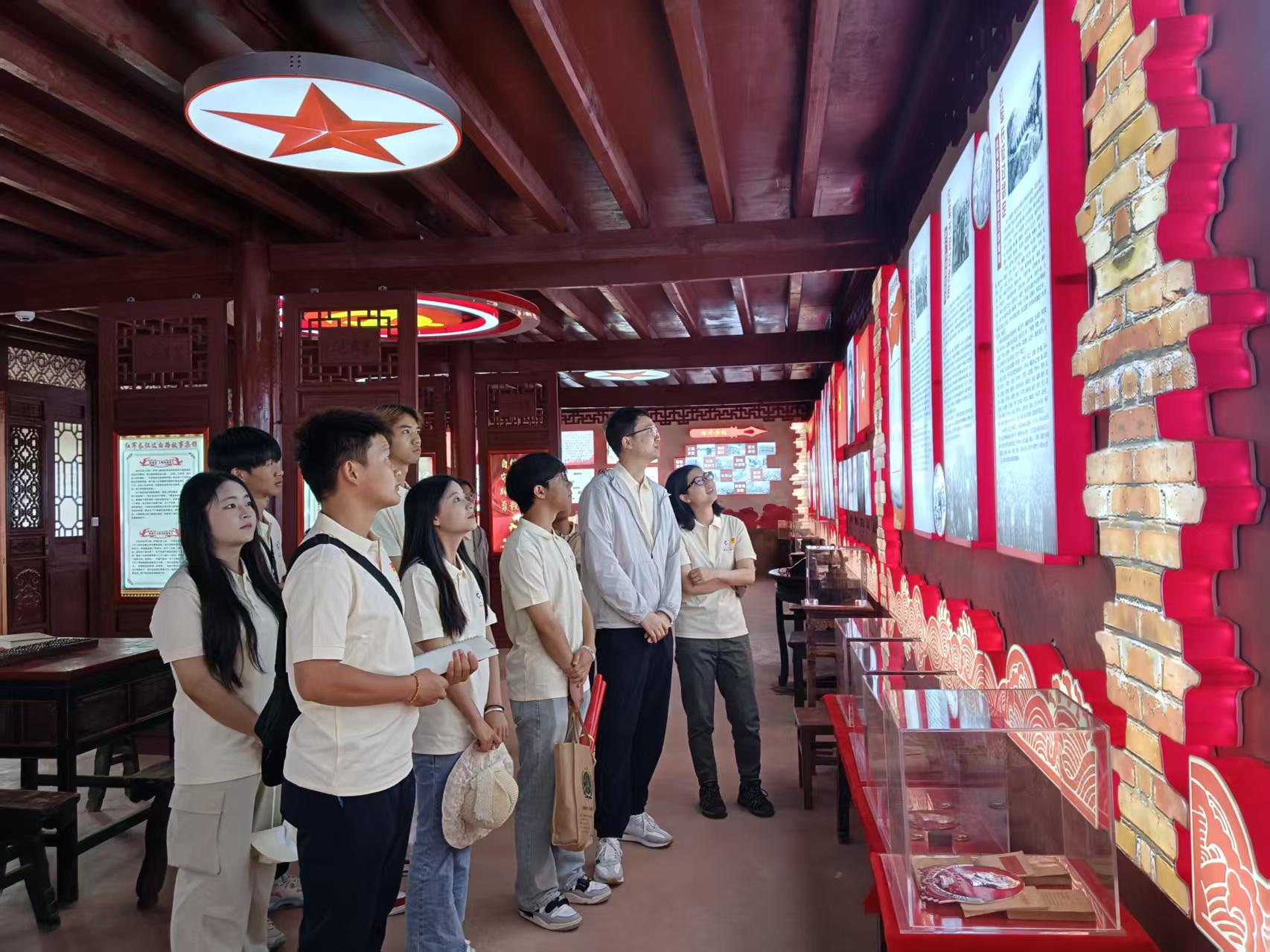 7月10日上午,实践团走进白路镇木高古村红军长征纪念馆。泛黄照片、锈迹斑斑的步枪、感人的长征故事……同学们在讲解员带领下沉浸式回望峥嵘岁月,把“长征精神”刻进心底。