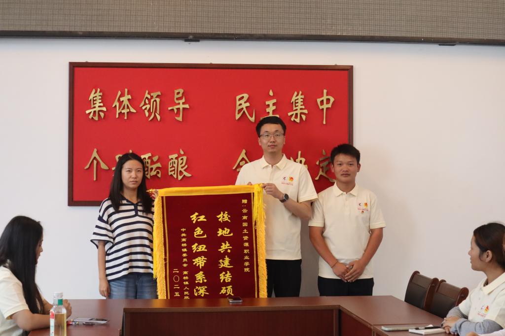 实践团与武定县高桥镇党建办主任、团委副书记李娅共同参与总结会,回顾实践历程,共话收获与展望。首先,实践团学生代表依次发言:邵薇同学以长征精神为指引、地质精神为核心,总结实践收获;唐海杰同学围绕“传承、坚守、担当”,分享学习历史与实践结合的感悟。学院带队教师高志鸿代表实践团表示,此次实践既是响应国家“三下乡”暑期社会实践的号召,更是锻炼学生、助力农产品推广的良好契机,并对当地政府给予今年会官网此次活动的大力支持表示衷心感谢。最后,李娅主任也对实践团的付出表示感谢,并为团队送上锦旗,为活动画上圆满句号,双方合影留念,定格这段难忘的乡村实践记忆。