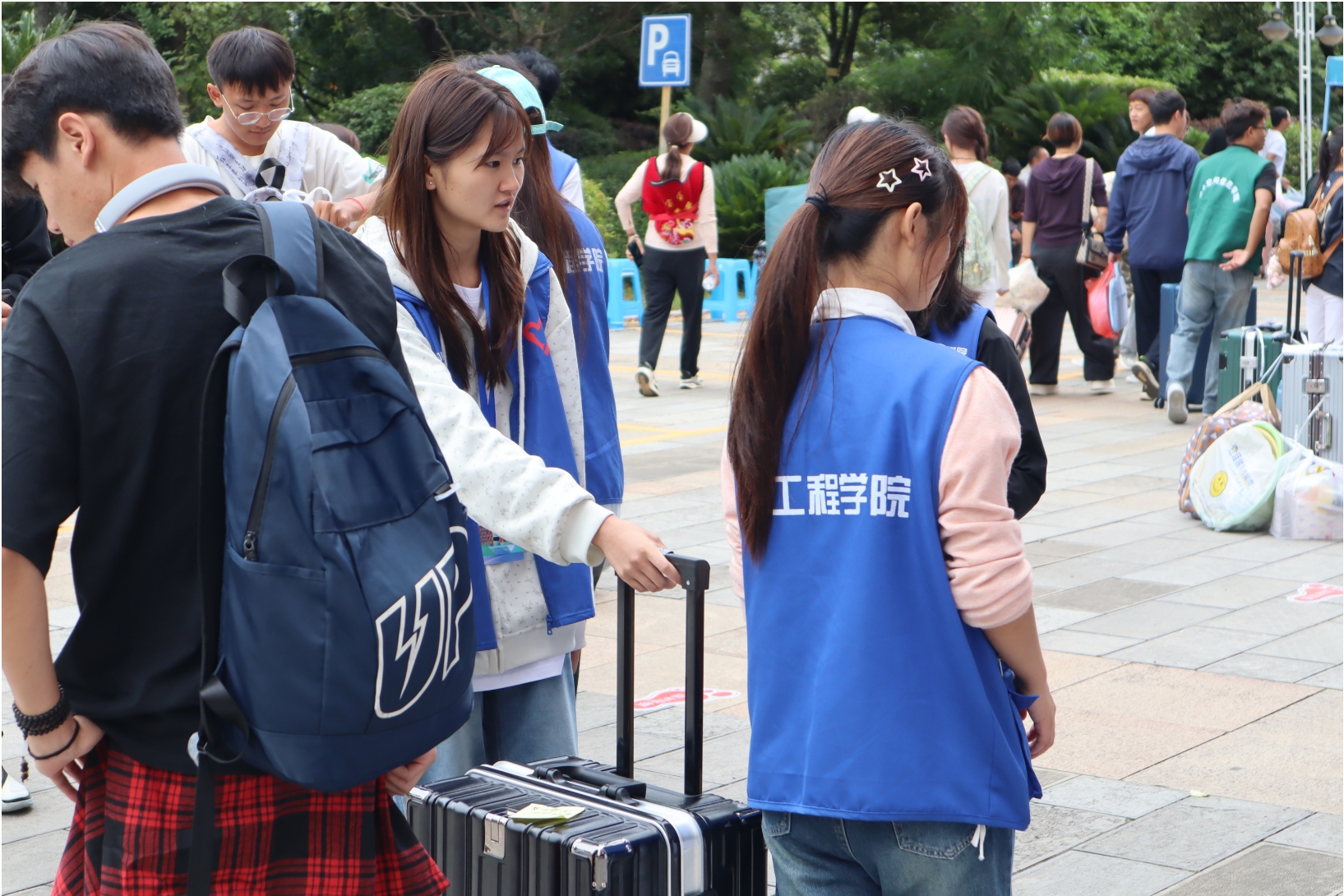 迎新现场,志愿者们身着统一服装,主动上前接过新生的行李,耐心引导新生完成身份核验、缴费注册、宿舍入住等流程,志愿者们热情周到的服务,展现了建工学院学子的良好风貌。学院新生辅导员与各班助坚守岗位,全身心投入新生档案整理、信息核对工作中确保新生报到环节零差错学院领导亲临现场,走访看望迎新工作开展情况,给负责迎新工作的辅导员、班主任和志愿者们加油鼓劲