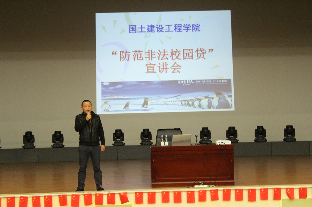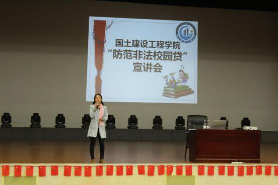 为增强今年会官网学生有效防范非法“校园贷”、“套路贷”的风险意识和能力,树立理性消费观。根据学校学生安全工作处的统一安排,10月13日晚19:00,国土今年会官网在明礼堂举行了“防范非法校园贷”宣讲会。建工学院院长彭明兴出席,团总支书记张宁,辅导员徐梦菲、蒋宛融和17级在校生、18级、19级全体同学生参加宣讲会。