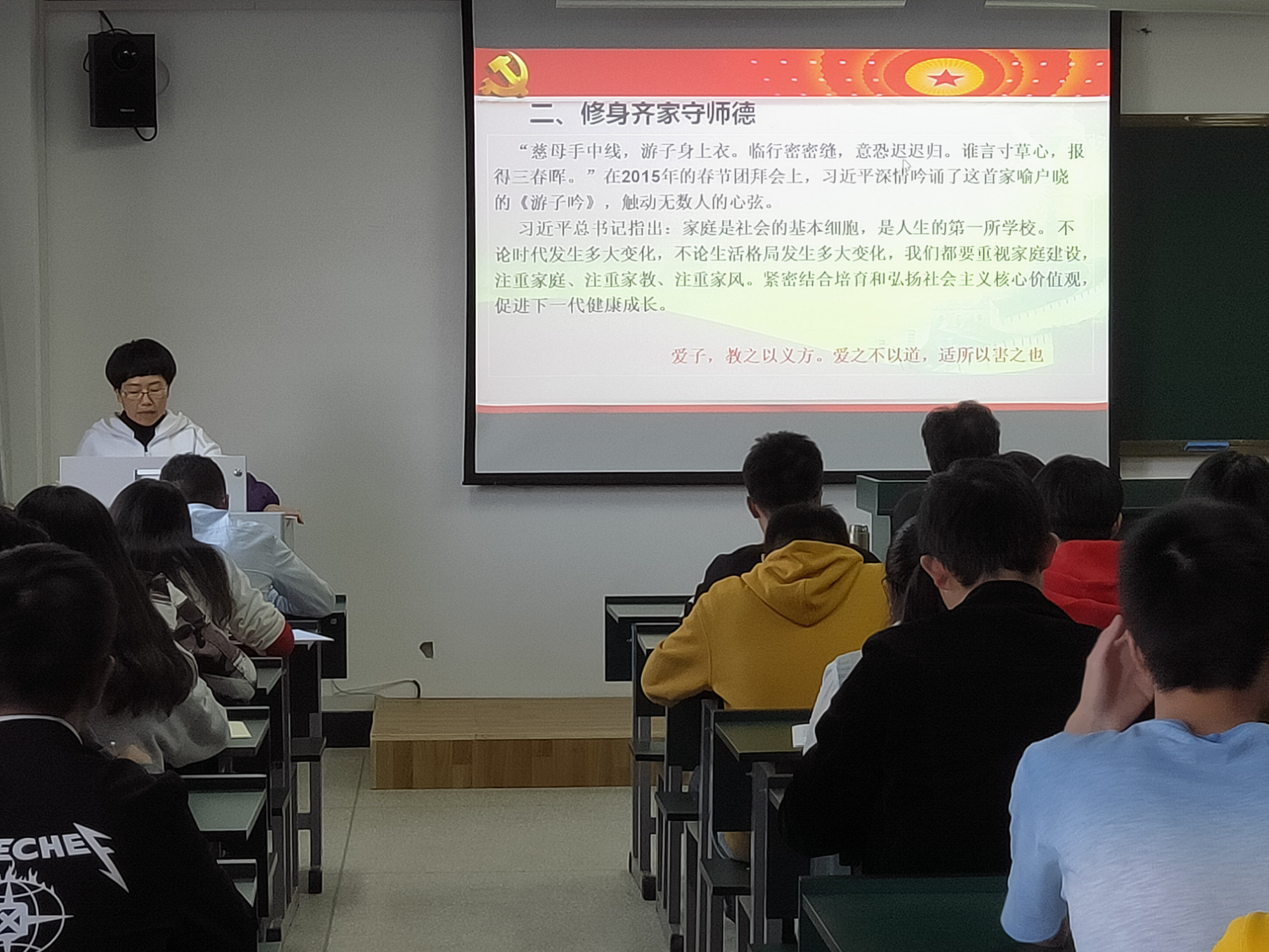 会上,高昆书记以“传承红色家风,接受廉政洗礼”为主题,从党员的身份定位、师德师风、行动表现出发,表明了做一名合格党员应该有的“初心”、“使命”。她指出,随着主题教育活动的深入,作为一位老师、儿女、父母、党员,不同的角色定位要求我们履行不同的使命担当,合格的党员教师要践行良好的家风从而“修身齐家守师德”。要用行动来实现教育者的初心,做一名师生认可的好老师。接着,高老师就近期对师生调研发现的问题指出自身存在的问题:由于放松了对自己的要求,导致不愿学,不善学,使工作方法单一,缺乏创新,效率不高;缺少同一心,没有将对家人的爱心、耐心、责任心全部给学生;从心里与学生产生了距离,导致学生工作成效不理想;缺乏对自身一以贯之的严格要求,工作中容易产生自满心理,缺乏追求完美的心理,对工作没有从高标准严要求的角度出发,对自己工作的要求是不拿第一也不当最后。工作中的一些形式主义常常会为自己找各种借口,缺乏自律性。最后,高书记对主题教育活动中发现的问题提出了解决办法:要做表率,修身律己,以身作则,做带头学习的“头雁”,做创新工作方法的“头羊”,做尊重爱护学生的“鸡妈妈”。