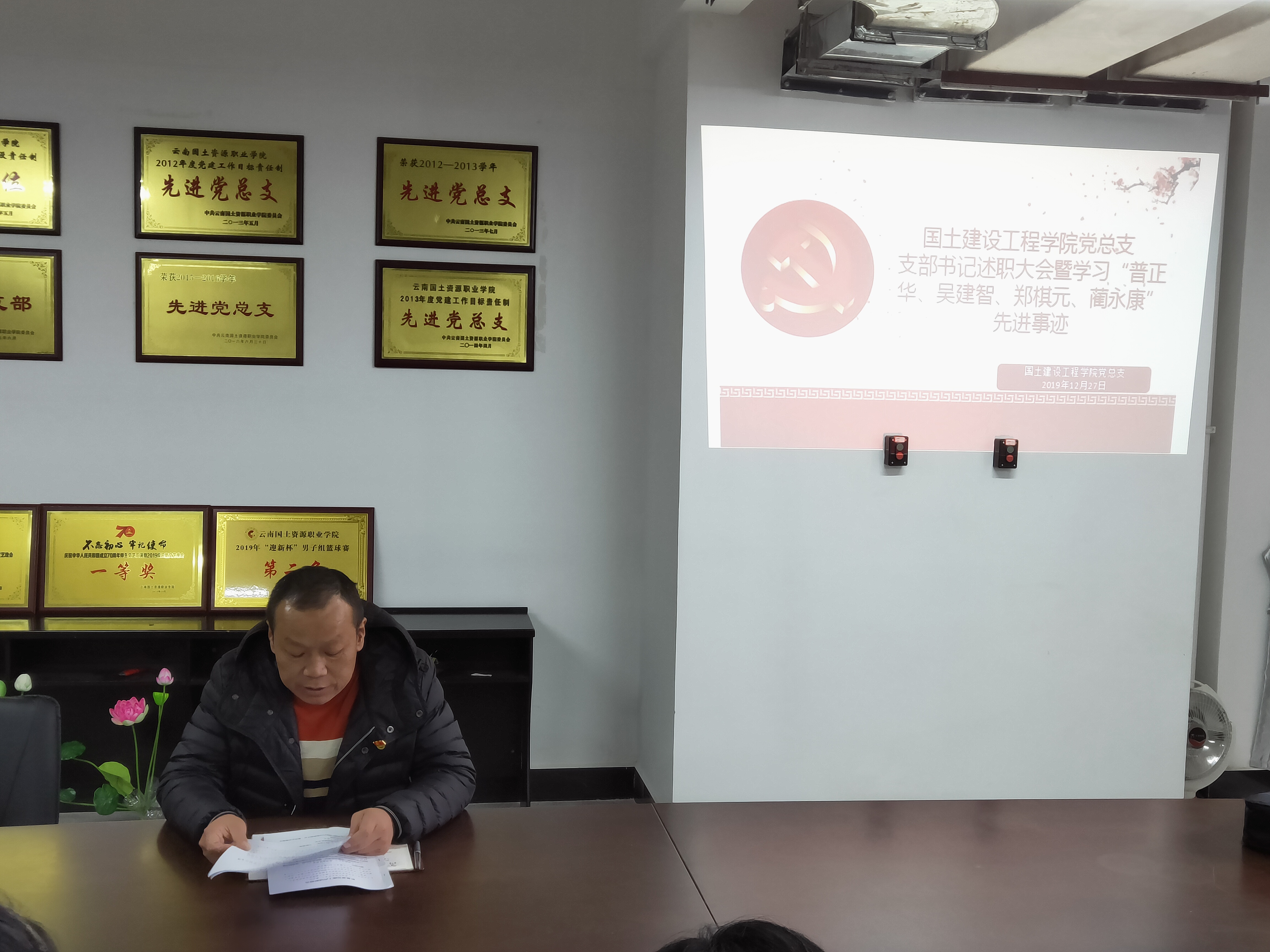 12月27日中午明尚楼c301,国土今年会官网党总支组织召开支部书记述职会。建工学院全体党员和非党员教师共34人参会,会议由党总支书记高昆同志主持,工程管理党支部书记张宁同志、工程造价党支部书记廖术龙同志、后勤党支部书记王春莲同志分别就2019年抓支部党建工作情况进行述职。