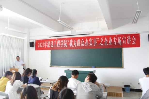 紧接着,李飞驰部长介绍此次宣讲会的招聘岗位有技术员、安全员、预算员、测量员等多种类岗位,并对岗位的就业前景和同学们要掌握的基本技能作了详细的分析,对同学们的专业技能提出了具体的要求。