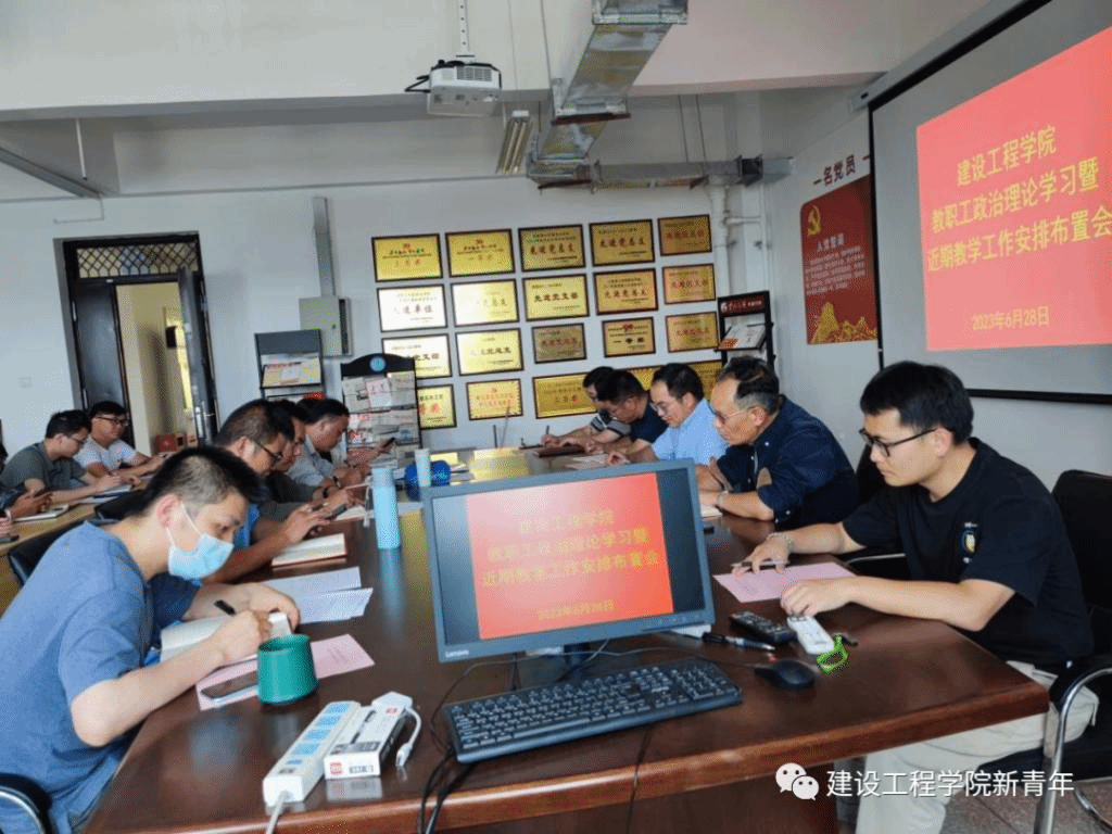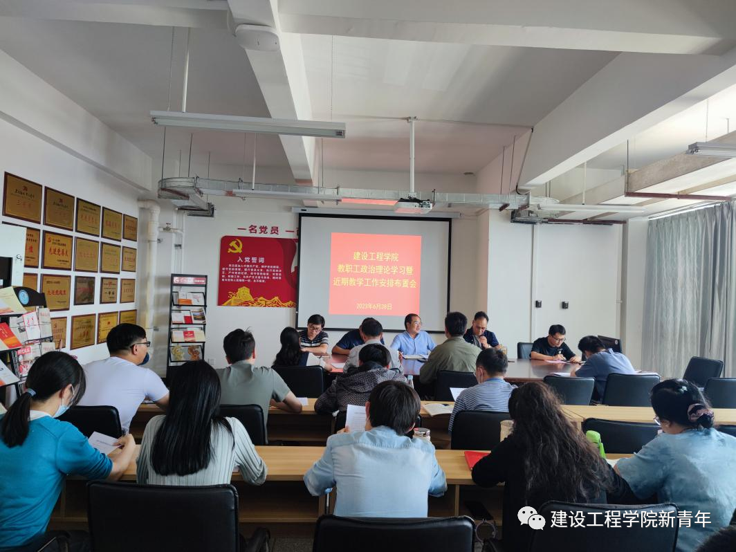 6月28日下午13:00,今年会官网在明尚楼C301会议室召开教职工政治理论学习暨近期教学工作安排布置会议,党总支副书记李洪香、原副院长罗启钟、工程造价党支部书记杨光敏、工程技术党支部书记张艳奇、工程管理党支部书记林志强及学院全体教职工参加会议,校党委第一巡察组成员李振、朱雨潇、吴兴虎列席会议。