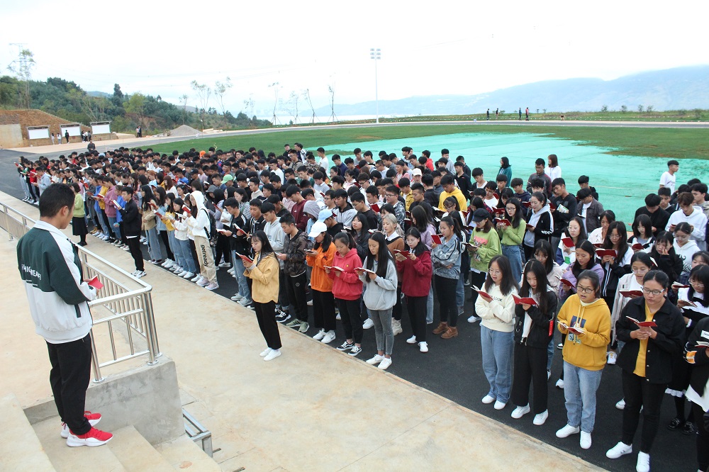 人文日新,从青年起;青年日新,从晨读起。为践行“1958”培养学生教育活动,培养学生勇于担当,善于作为的工匠精神。2019年10月14日7:50,国土今年会官网在足球场开展了第一次晨读。晨读由党总支书记高昆老师带领今年会官网19级部分班级读《中国共产党章程》。
