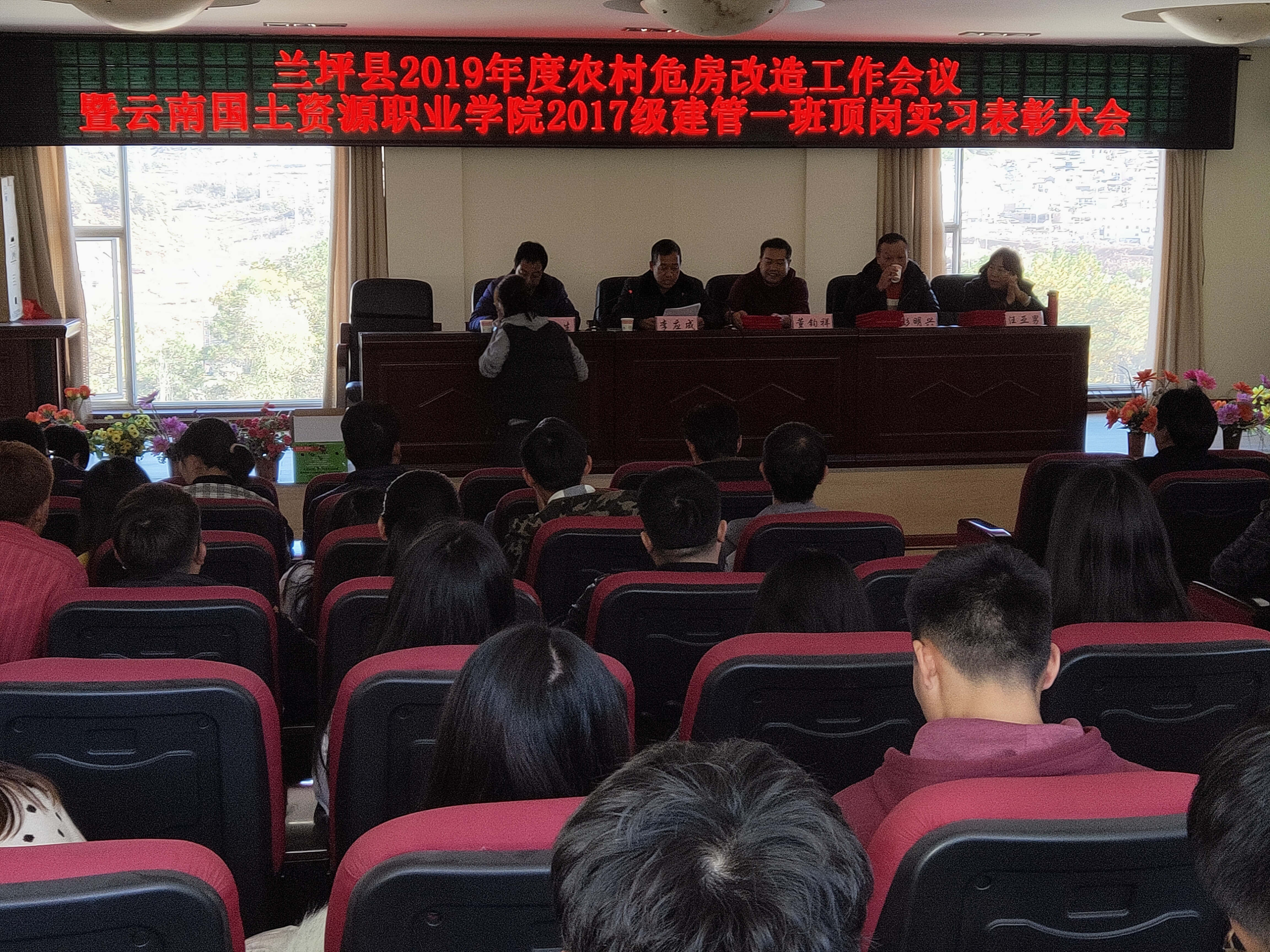 11月底今年会jinnianhuicom如期圆满完成兰坪县的农村危房改造工作。此项工作是由今年会官网国土今年会官网17级建筑经济管理1班的56名同学参与完成,为总结利用顶岗期间学生参与具体项目学校在人才培养方面的取得的成绩及被培养人在项目中的收获,学校于2019年11月29日下午14点在兰坪县住建局会议室召开农村危房改造顶岗实习总结大会,同时对在农村危房改造项目中表现优秀的学生进行表彰。兰坪县住建局李应成局长、张吉生副局长,今年会jinnianhuicom董钧祥副校长,国土今年会官网彭明兴院长,继续教育学院汪亚男院长出席会议,各乡镇顶岗实习指导老师与住建局工作人员、全体实习生共同参会。