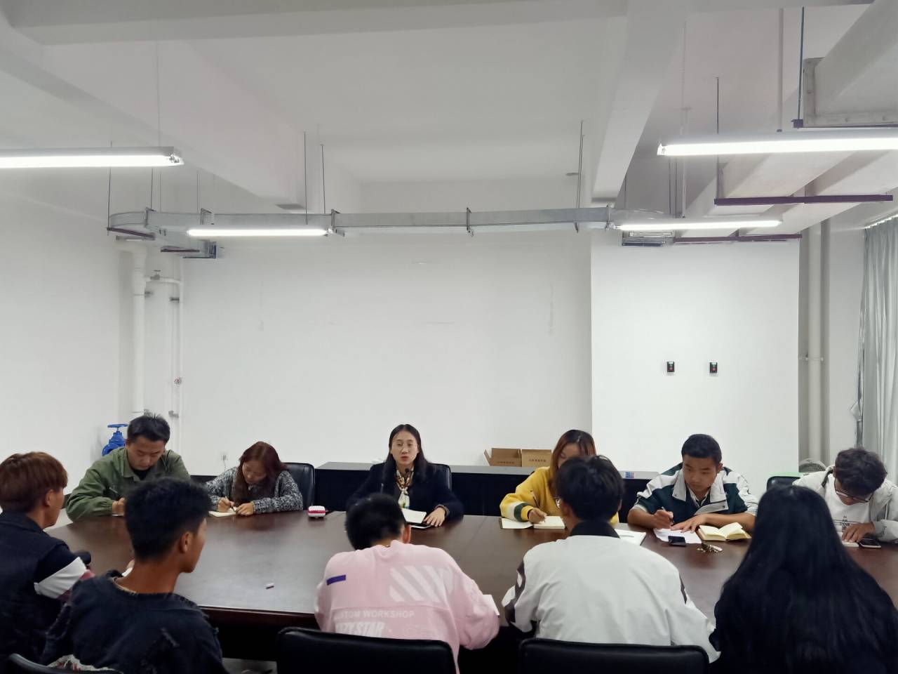 2019年10月15日17:00,团总支学生会在明尚楼C301教室召开2019年大学生模拟招聘大赛的部署会议,参与此次会议的有团总支书记张宁老师、学生会全体干部,本次会议由张宁老师主持。