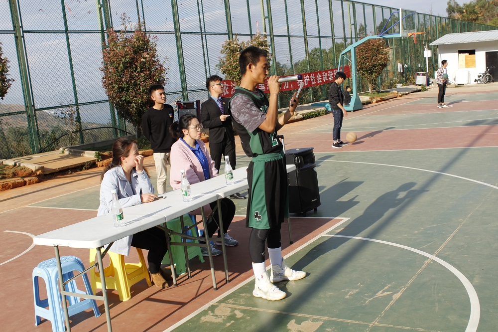 首先,在阳宗校区的篮球赛开幕式上,庞老师作致辞,庞老师提到,感谢各位学生会干部和参赛队员的支持,新开始新赛事,各位球员可以在比赛场上尽情地挥洒汗水、展现团队的精神和风采,但是,在比赛中注意安全,学院此次比赛坚持“友谊第一,比赛第二”的宗旨,希望各个班级在比赛中取得优异的成绩。