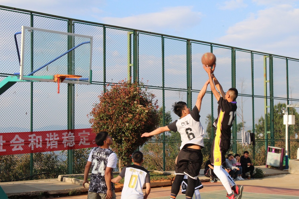 伴随着阵阵呐喊声篮球赛开始了激烈的角逐,场上队员迅速进入状态,个个雄姿英发,各队球员主动出击、直逼篮板,几个轮回下来,双方比分僵持不下,氛围嗨爆全场。