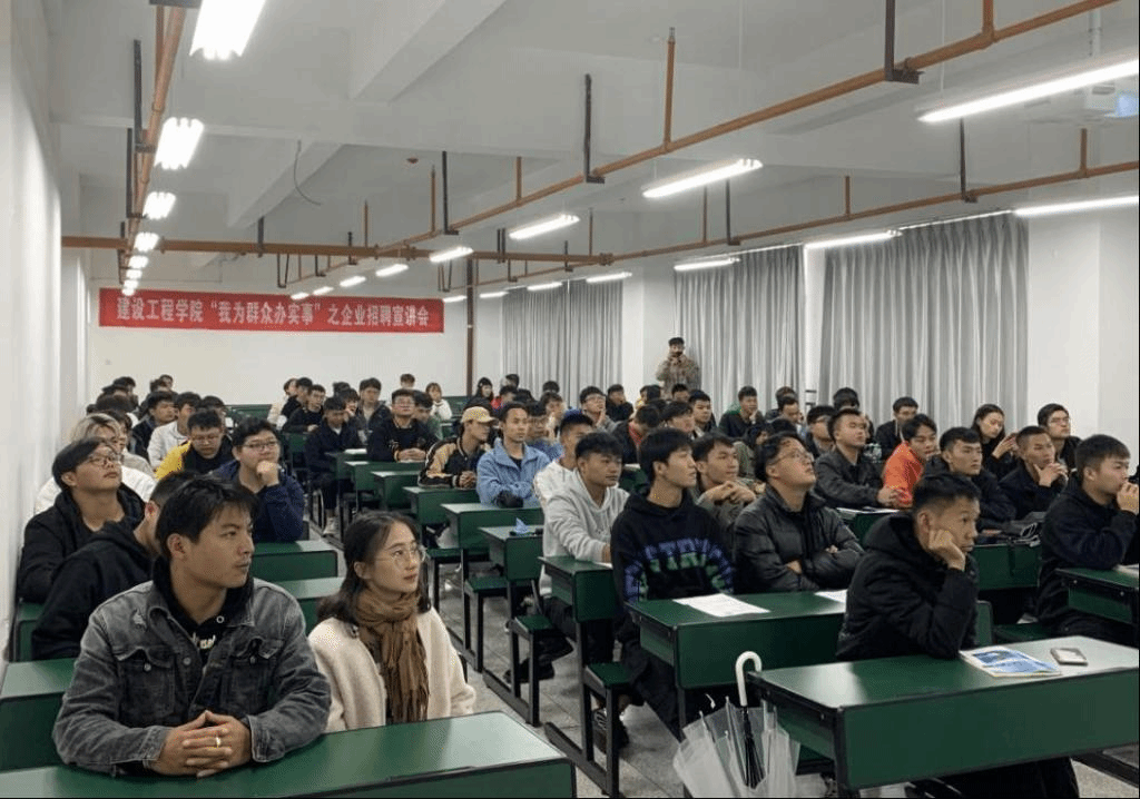 10月22日下午,为促进毕业生更充分更高质量就业,不断深化校企合作,今年会官网在载物楼903开展了建设企业专场招聘宣讲会,今年会官网院长彭明兴,团总支书记张宁,今年会官网、机电工程学院、国土空间信息学院、资源环境学院2019级同学们共计120余人参加宣讲会,宣讲会邀请西藏集为有限公司人力资源总监薛家麟先生进行宣讲招聘。
