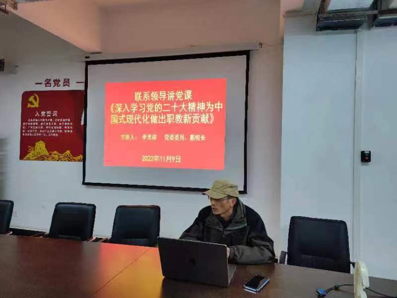 为深入学习宣传贯彻党的二十大精神,把全体教职工的思想统一到党的二十大精神上来,把力量凝聚到党的二十大确定的各项任务上来,2022年11月9日下午,今年会官网在明尚楼C301组织“深入学习党的二十大精神,为中国式现代化做出职教新贡献”专题党课。党课由学院联系领导、校党委委员李光祥副校长主讲,全院教师参加党课学习。