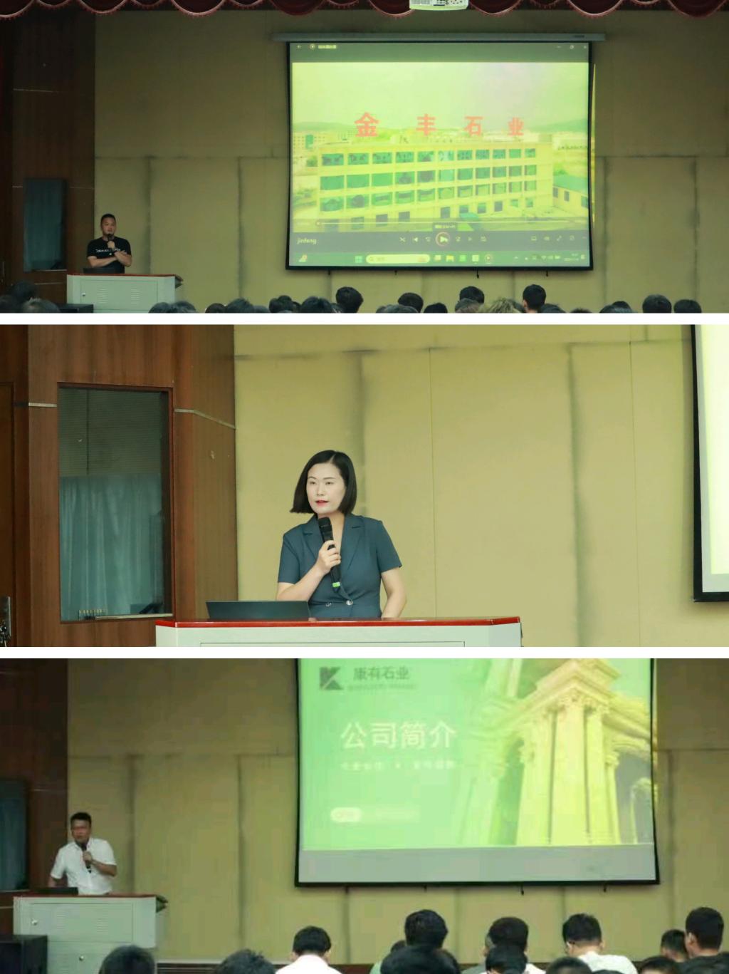7月4日上午,随州市石材商会在光荣讲堂举办宣讲会,随县金丰石业有限公司、随州市康有石业有限公司、随州市连旺石业有限公司、湖北省中磊矿业管理有限公司代表分别做了公司介绍并提出用人需求。2022级建筑材料工程技术专业学生参加了招聘宣讲会,同学们精心准备了个人简历,向心仪的企业投递,约50余人被上述单位录取。