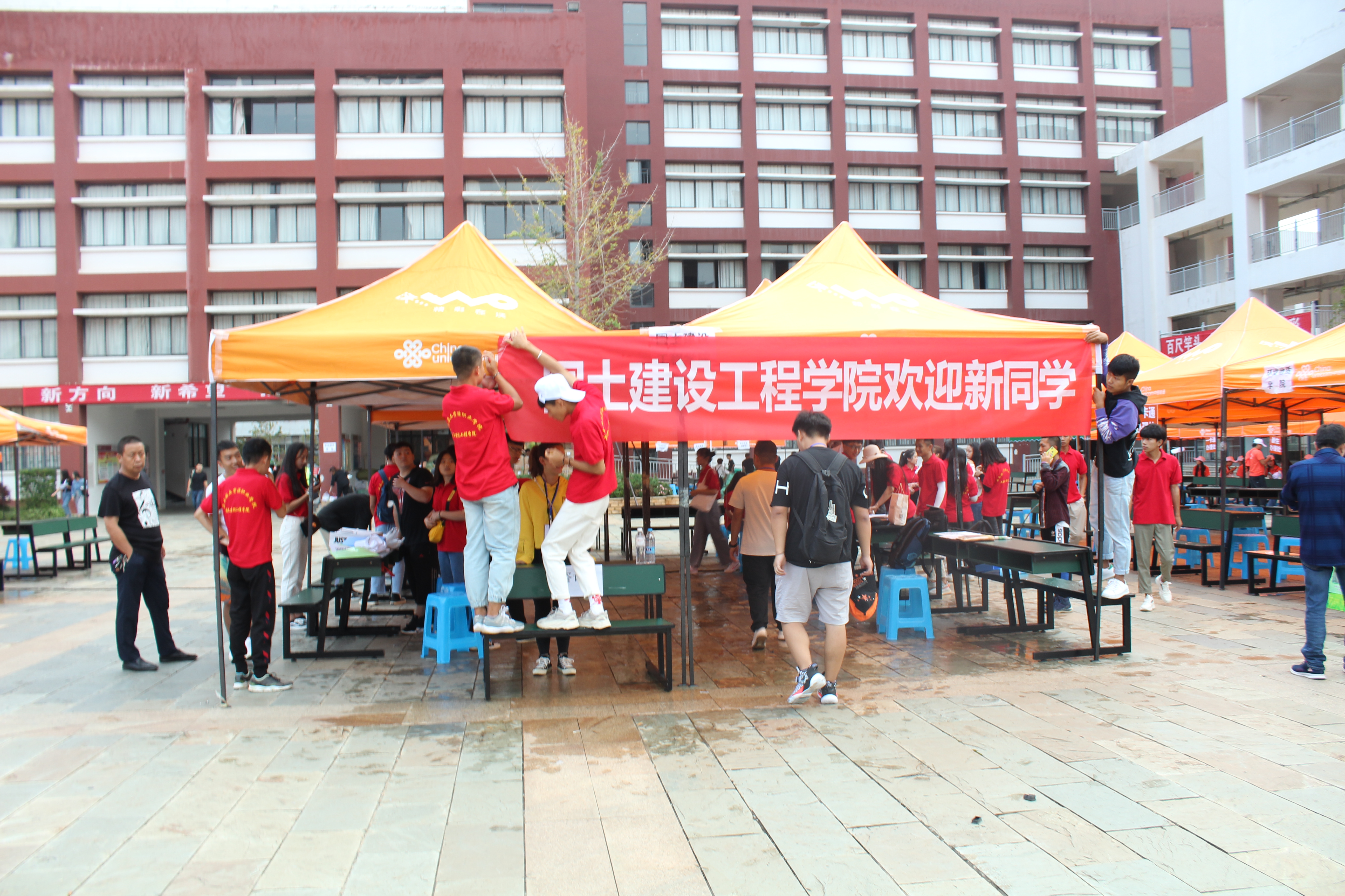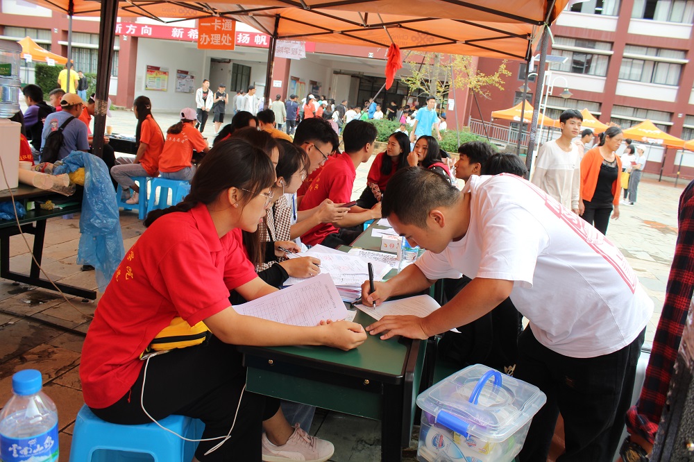 2019年8月27日上午7:20分,国土今年会官网迎接新生工作在阳宗校区国土广场正 式拉开了帷幕。负责接待的领 导,老师和志愿者们都早早的准备在了国土广场。第一批新生到校了,迎新工作开始了:引导、登记、收集资料、答疑解惑并带领新生找 到属于自己的宿舍。不一会儿大家的额头上已经挂满了汗珠,但展现出来的激情却有增无减。到了下午,天空突然下起了大雨,虽然天公不作美,给新生以及陪同的家长带来了一些麻烦,但由于迎新工作准备充分、组织得力,新生报到依然进行得井然有序。