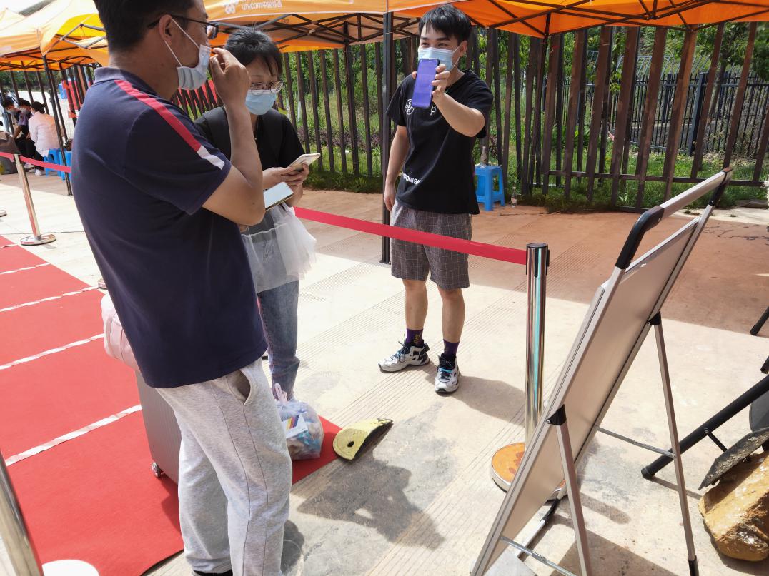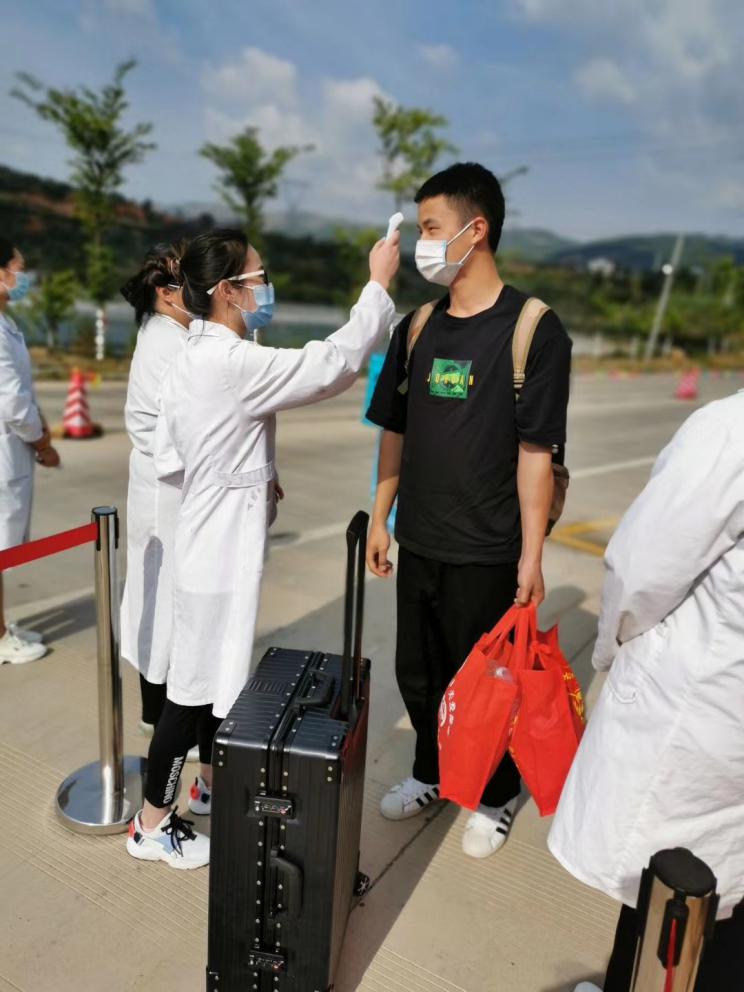 工作人员会对你全方位进行消毒和体温测量,确保安全再与同学们相聚