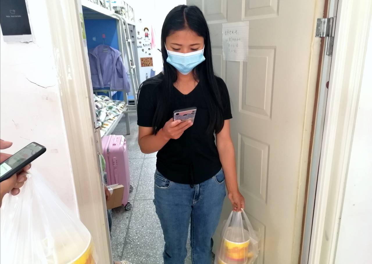 在同学们返校的过程中,经检测不正常的同学暂时被学校进行了集中隔离。因是返校第一天很多方面还未进入正轨,给被隔离同学的生活也带来了诸多不便,当得知要为被隔离同学送水送餐时,19级入党积极分子主动请缨,承担下了轮流为每位被隔离的同学按时送餐的任务。