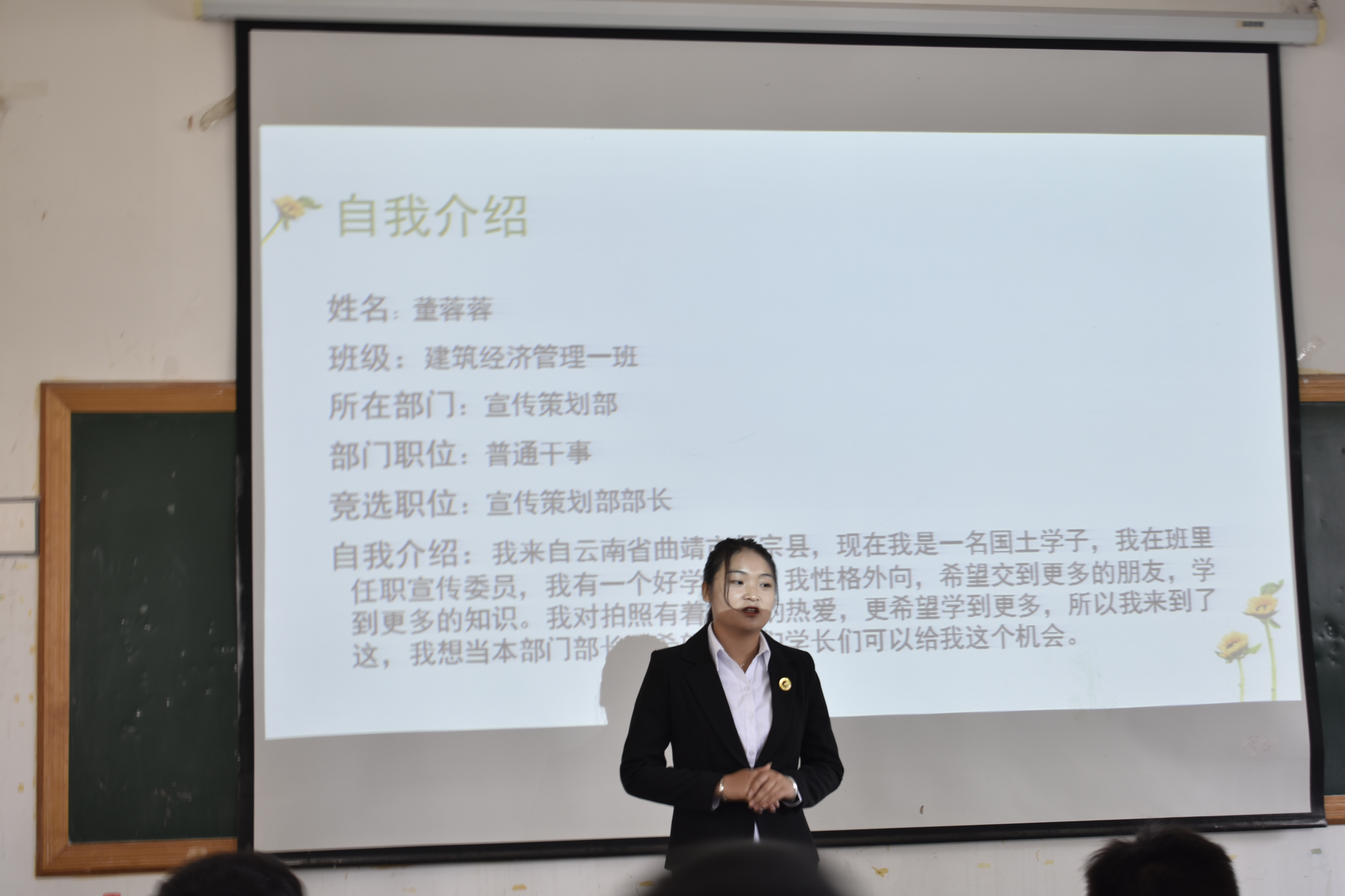第三轮主席团竞选于2019年6月21日14:00在经开校区图科楼101进行。工程造价党支部书记廖术龙老师、工程管理党支部书记杨建桥老师、学工办(负责人)及团总支书记杨寿鑫老师、辅导员霍冬芳老师、建工学院专职教师等16位老师作为评委,14位同学参与主席团竞选。竞选同学依次进行竞选演讲,评委老师严肃认真提问,竞选同学游刃有余地应对评委老师的问题,认真聆听评委老师的建议并虚心接受。最后杨老师对于此次竞选同学的表现,用六个字来总结:自信、勇敢、阳光!自信源于承担,成功始于责任。从他们的表现中,我们看到了建工学院朝气蓬勃的未来,相信在学院领导、各位老师、学长学姐带领下,他们会不断完善自己、提高自己。